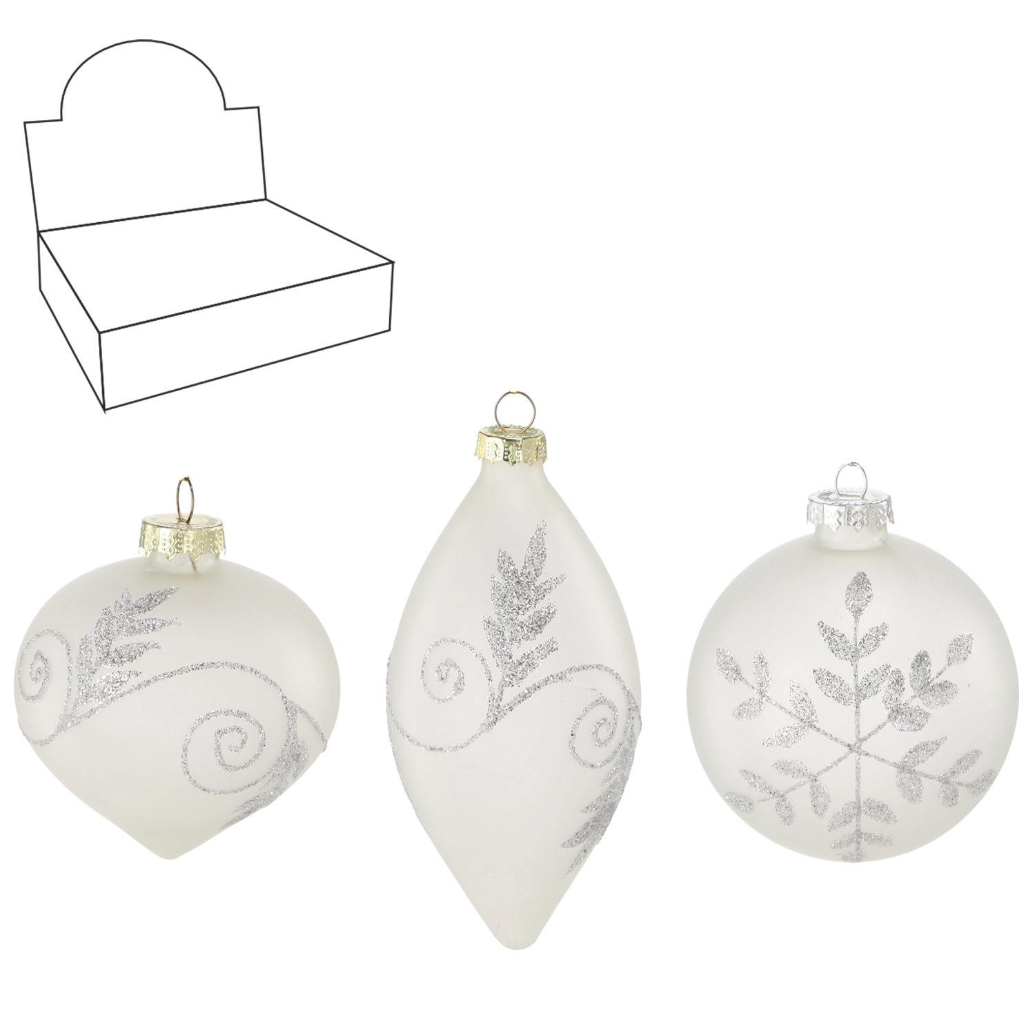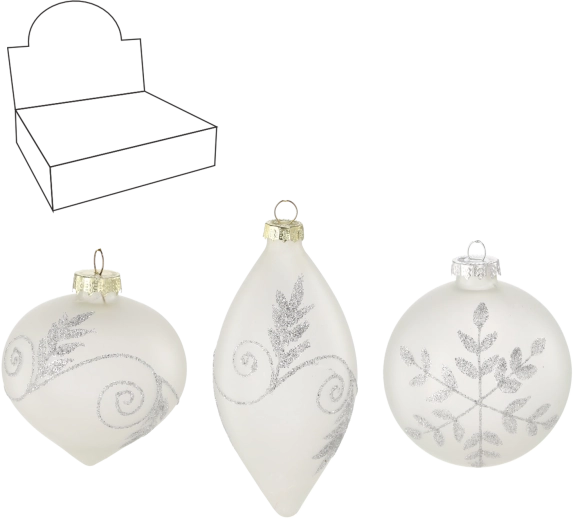 Élégantes décorations de Noël en verre, en blanc mat, qui apportent à l’arbre et à l’intérieur une touche de pureté hivernale et de luxe. L’emballage contient un assortiment de motifs qui se complètent harmonieusement. Les ornements sont finement réalisés et décorés avec discrétion, s’accordant aussi bien aux styles modernes que traditionnels. Choisissez une combinaison de formes rondes et allongées pour une décoration harmonieuse. Fabrication en verre, finition blanche mate, mix de motifs et formes variées pour un effet saisissant sur le sapin.