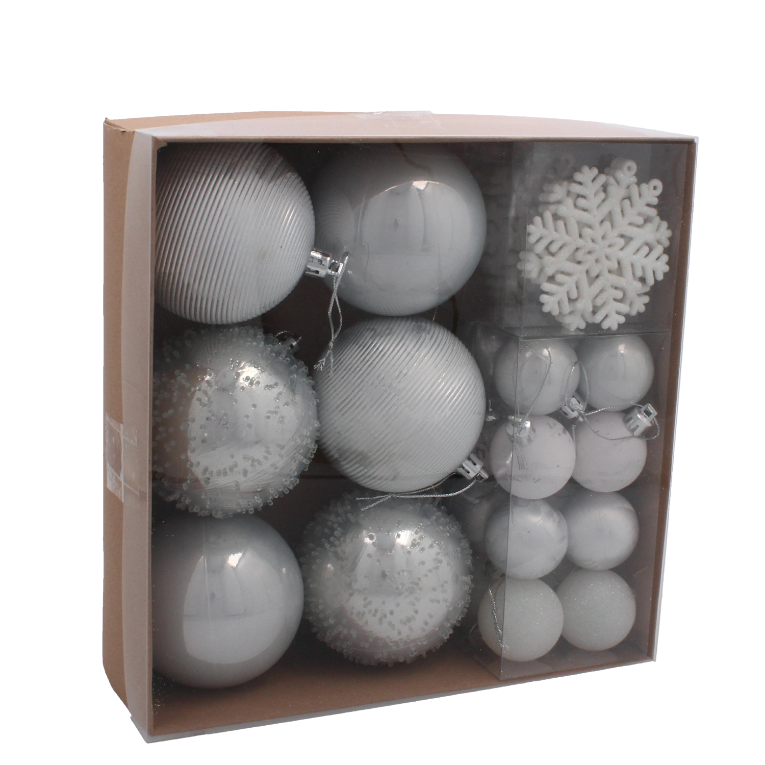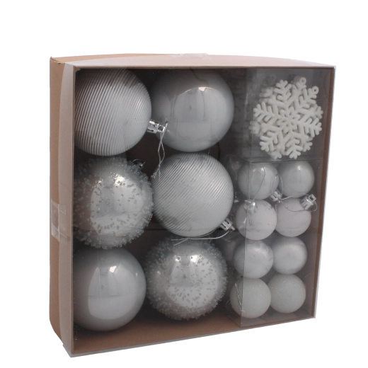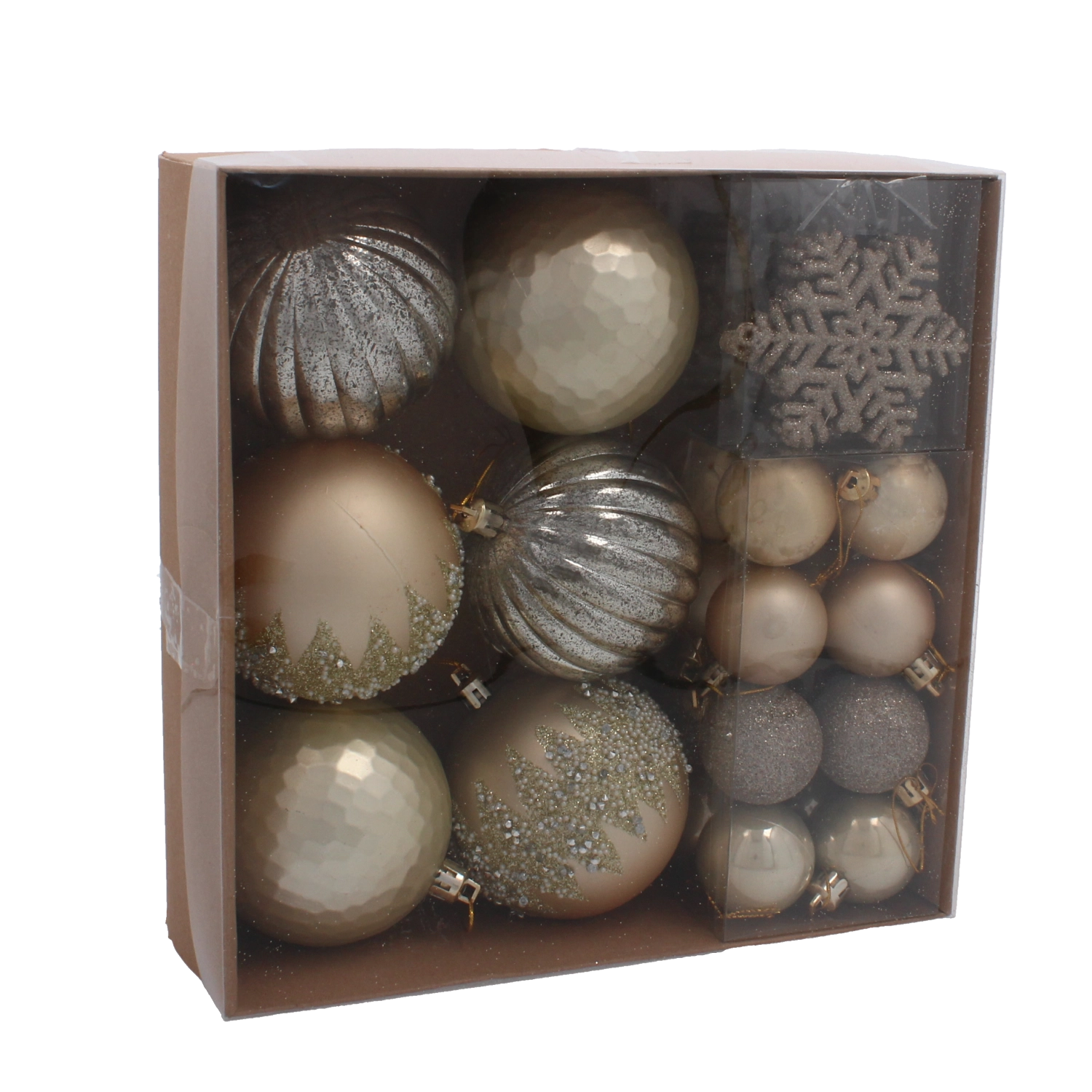 Cette collection équilibrée de 30 boules offre une parfaite harmonie de tons dorés et argentés qui illumine chaque sapin de Noël. Le plastique léger, résistant et incassable assure une suspension aisée et une sécurité accrue dans les foyers avec enfants et animaux. Grâce au mélange de surfaces lisses, brillantes, pailletées et en relief, vous obtenez profondeur, rythme et une impression de luxe frais sur votre sapin.