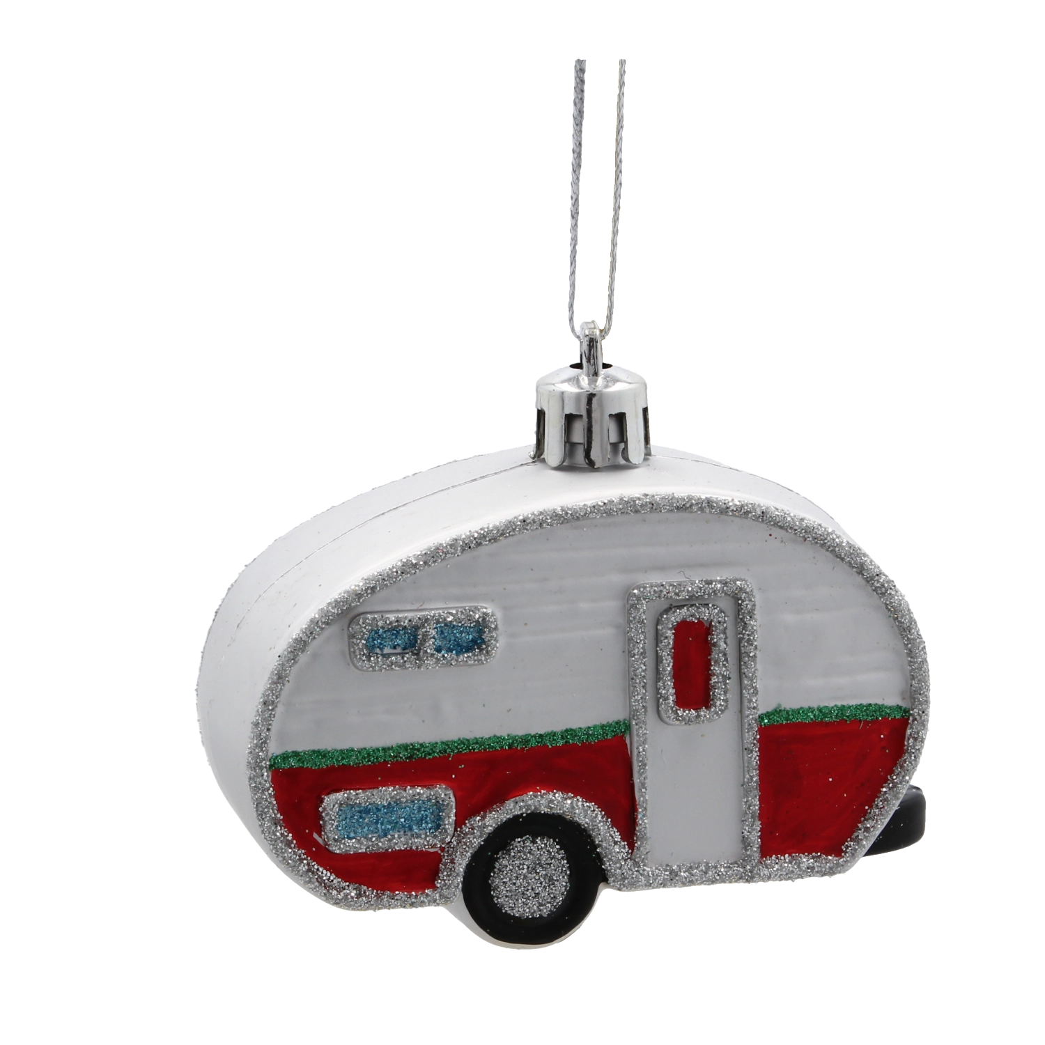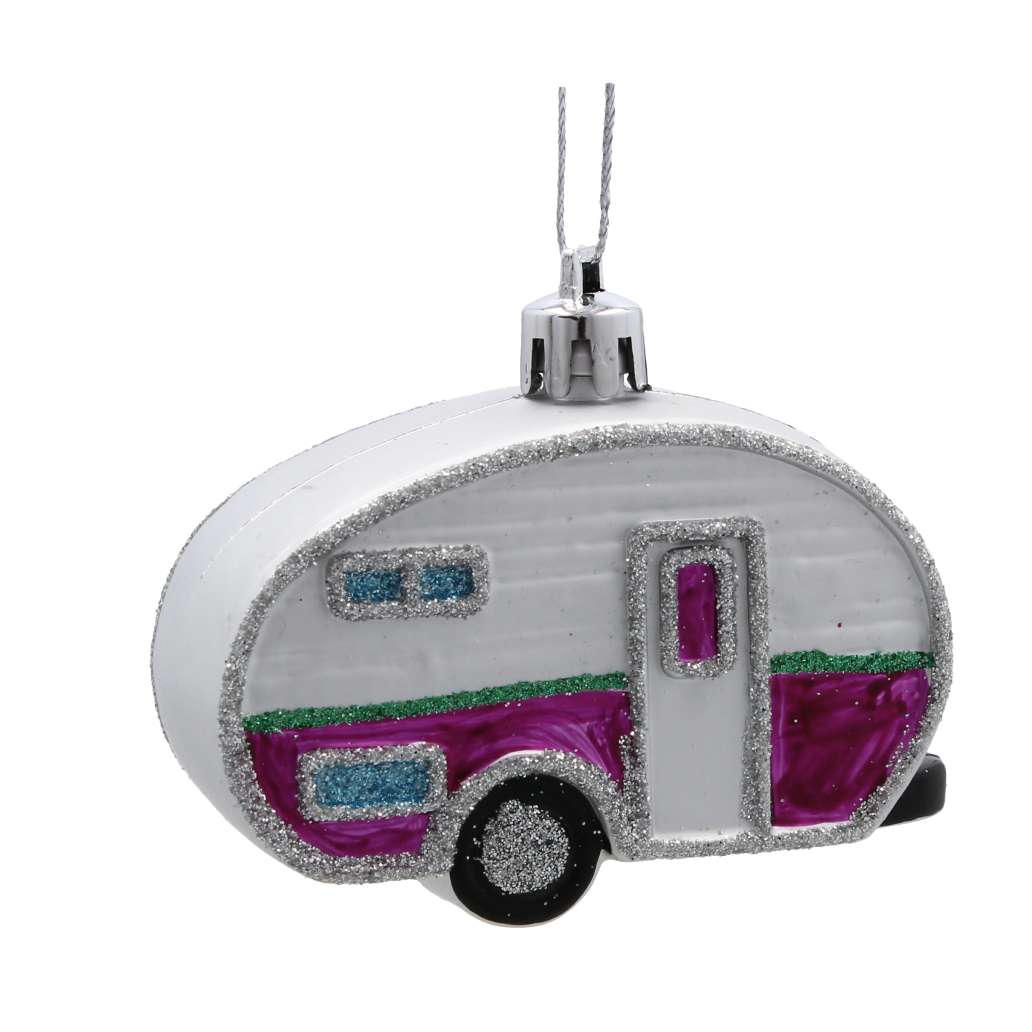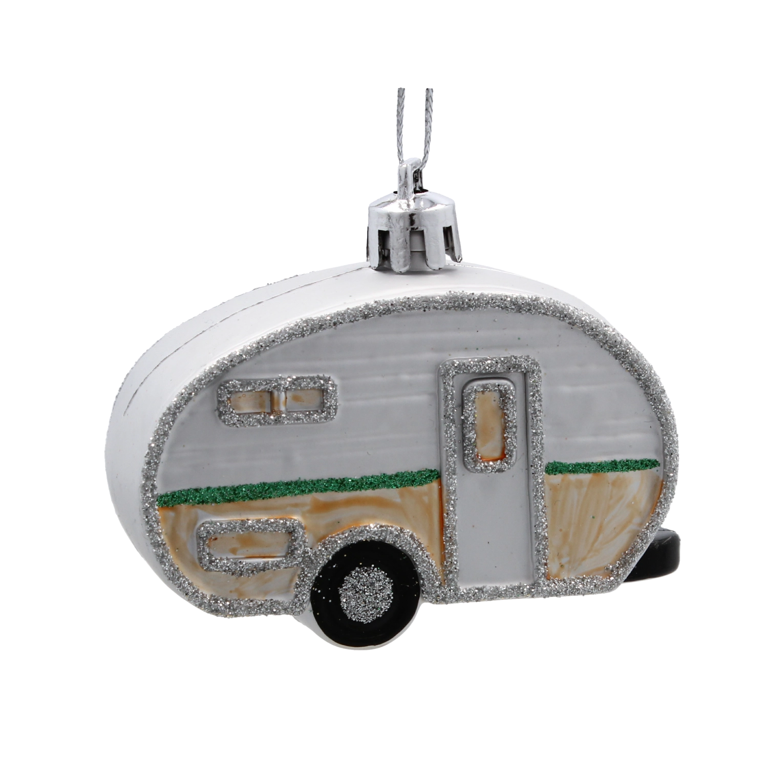 Des lignes délicates, des fenêtres et des contours de la caravane, rehaussés d’un subtil scintillement, donnent à la décoration un aspect festif et captivant.