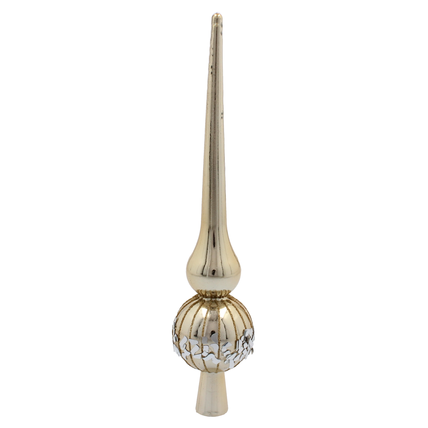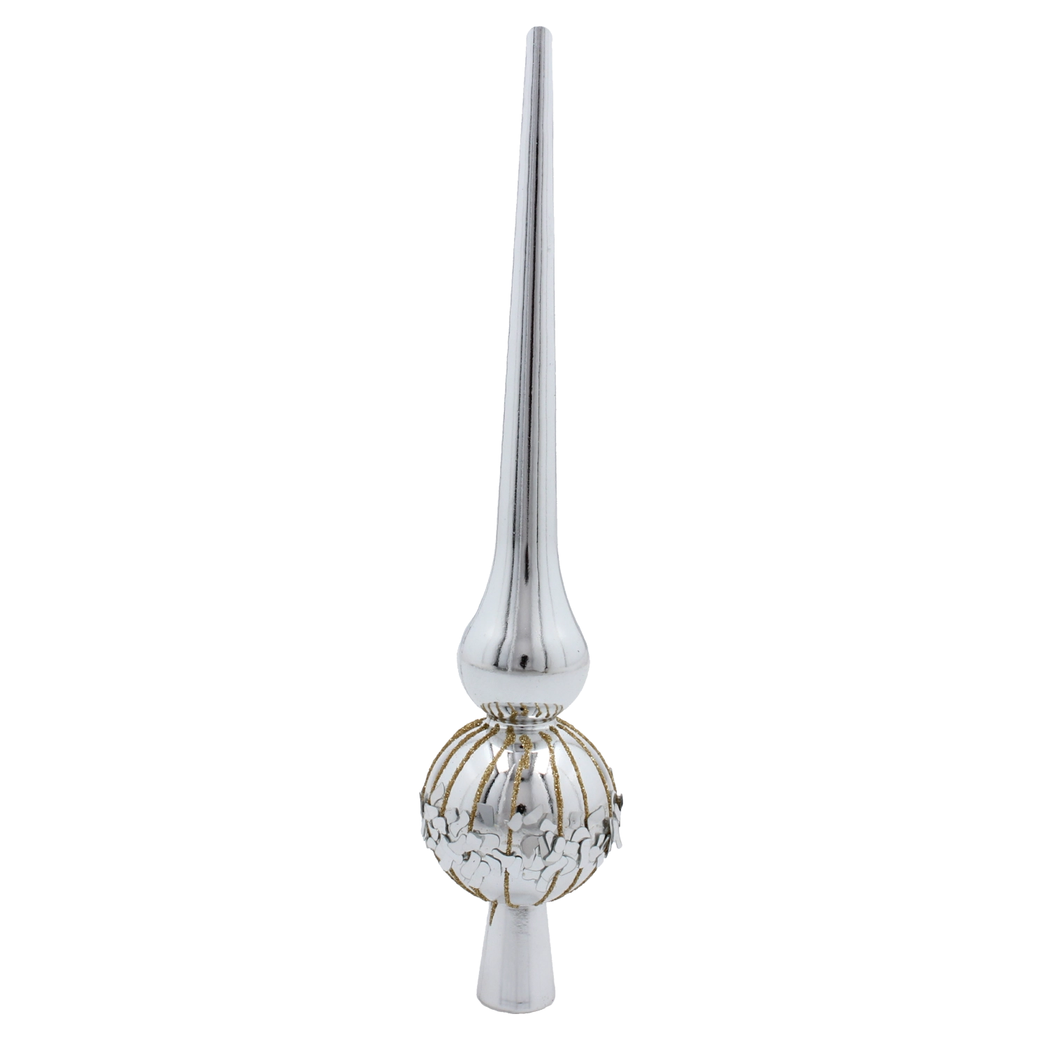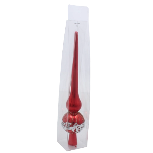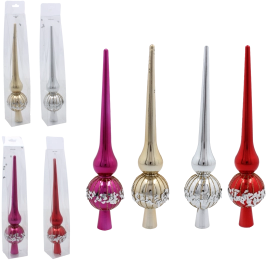 Apportez la touche finale festive à votre sapin avec une élégante pointe en verre de 25 cm de hauteur. Une décoration soufflée et peinte à la main en argenté, doré ou rouge qui reflète magnifiquement la lumière et crée une ambiance féerique de fête. Grâce au verre de qualité et à son travail soigné, elle est durable et adaptée à de nombreuses années d’utilisation.