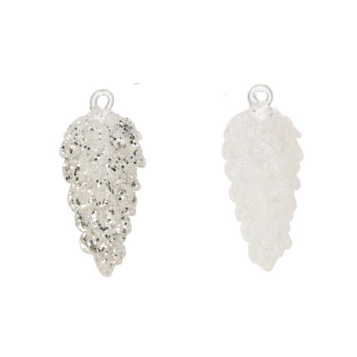Une élégante décoration en verre en forme de pomme de pin blanche apporte à votre sapin une brillance délicate et une ambiance festive. Grâce à ses motifs variés et à sa couleur blanche universelle, elle se marie parfaitement avec les autres décorations. Le verre de qualité garantit une longue durée de vie, les dimensions compactes facilitent la décoration et le conditionnement par 6 pièces aide à créer un aspect harmonieux.
