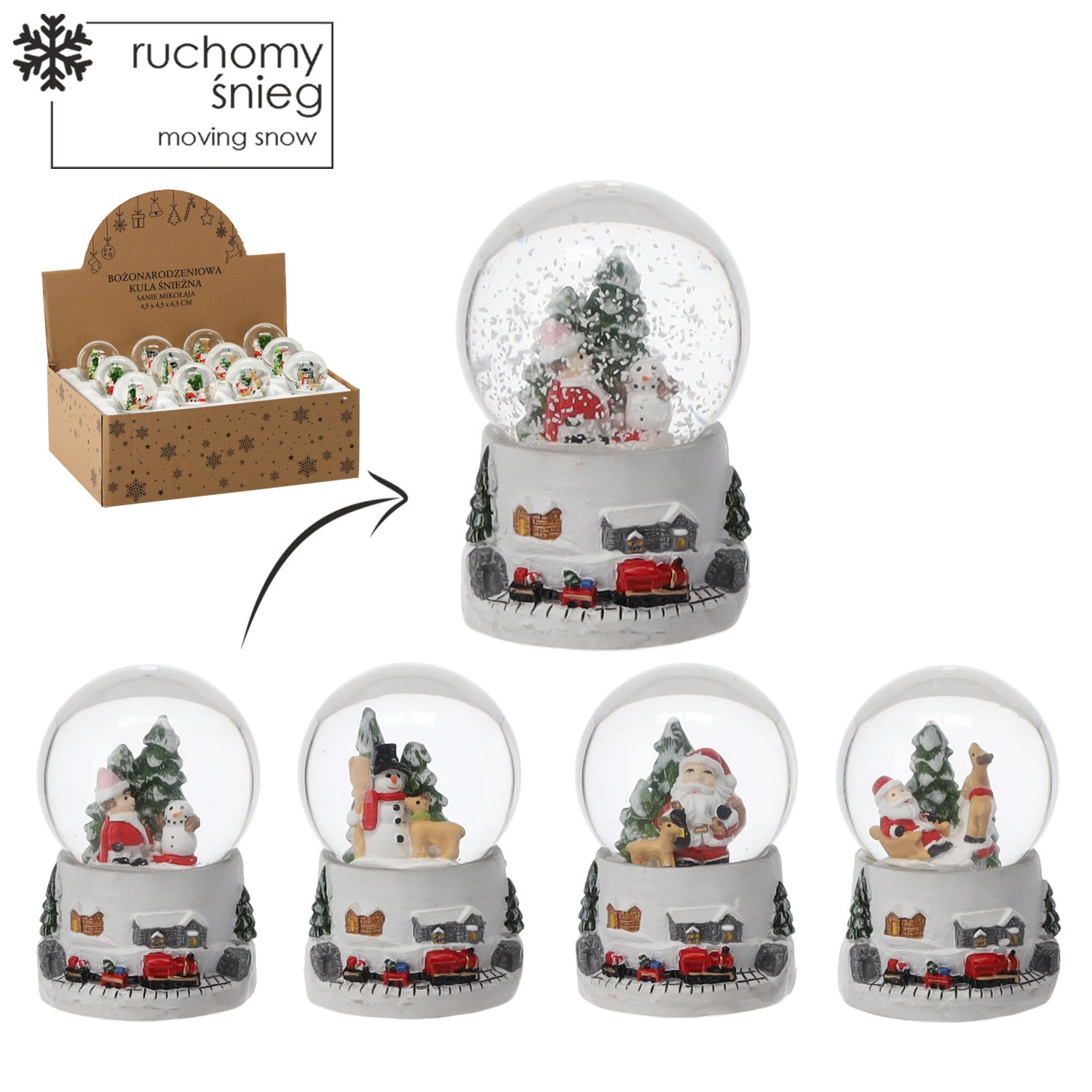 - PÈRE NOËL, renne, bonhomme de neige, village d’hiver, petit train rouge