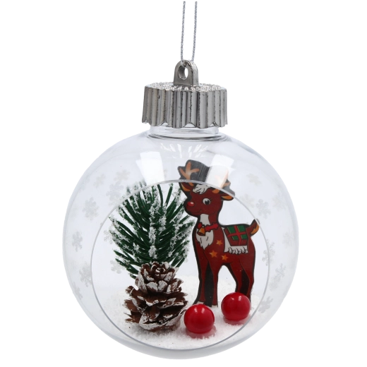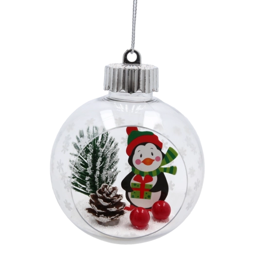 Élégante boule de Noël de 8 cm de diamètre avec corps transparent et délicate scène hivernale à l’intérieur, qui illuminera chaque sapin. Trois motifs au choix : manchot, renne ou Saint-Nicolas, pour une touche ludique et une atmosphère féerique. Grâce à sa construction légère et à ses matériaux résistants, elle se suspend facilement et dure longtemps. Parfaite pour les intérieurs traditionnels comme modernes, en décoration de sapin ou comme décor de table ou d’étagère.