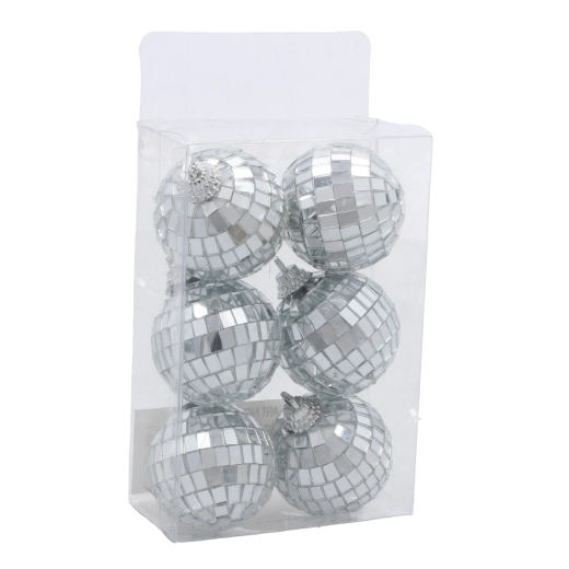 Un ensemble élégant de six boules de Noël au look boule disco apporte à votre sapin un éclat moderne et de raffinés jeux de lumière. Le plastique léger et résistant assure une suspension facile et une longue durabilité, et le diamètre de 4 cm est idéal pour une répartition homogène sur l’arbre.