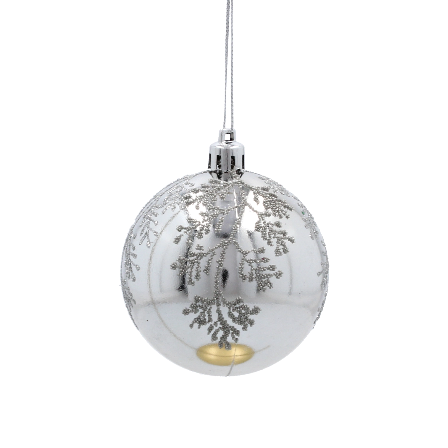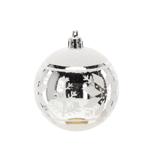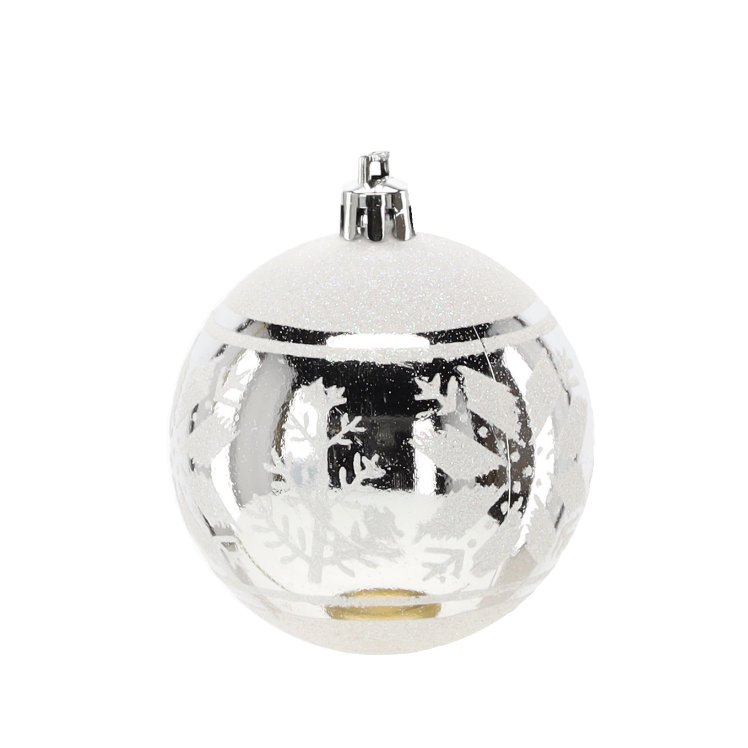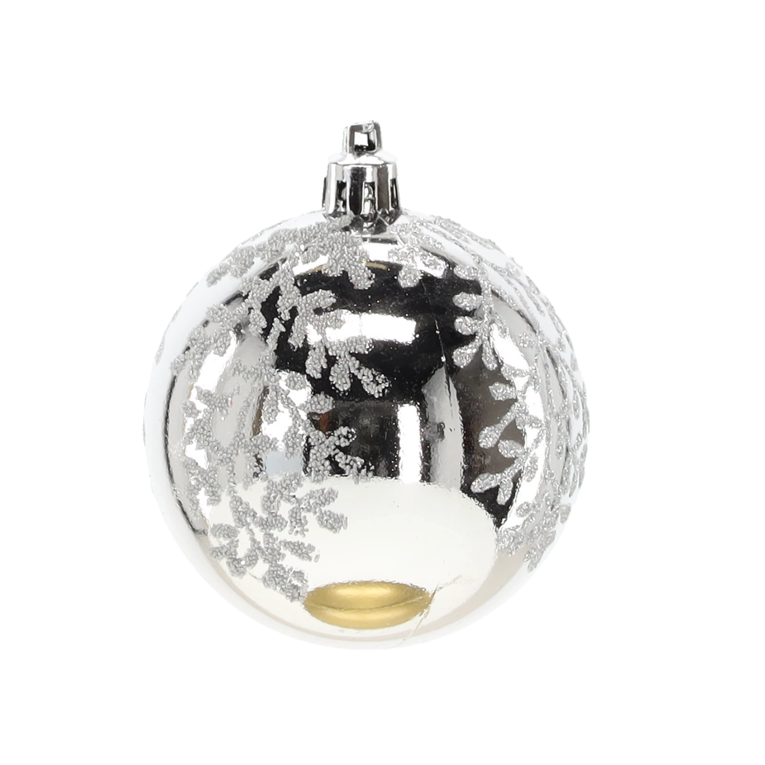 Set de 6 boules de Noël argentées 7 cm avec motifs variés