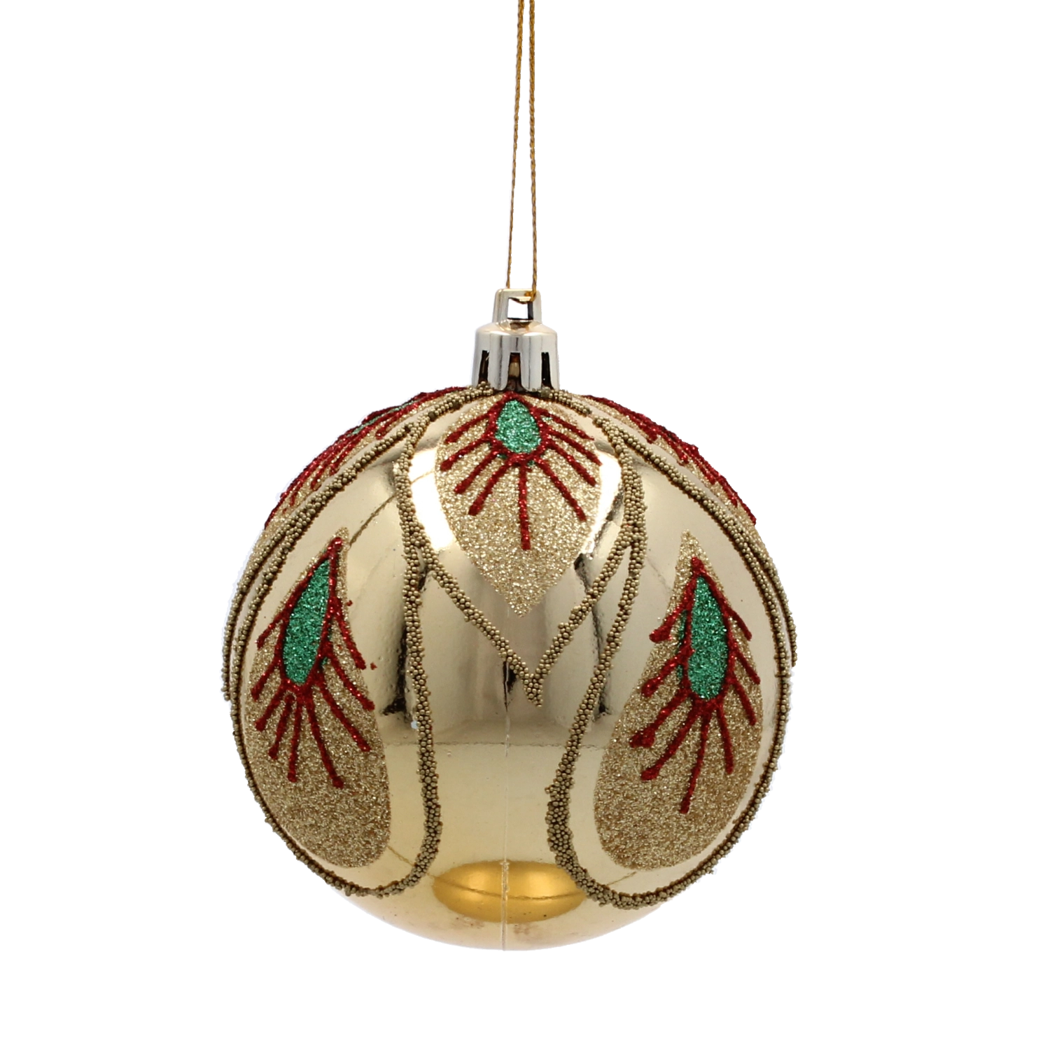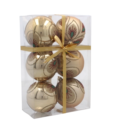 Apportez une note de sophistication à vos fêtes. Ce set coordonné de boules dans des tons or et champagne propose un équilibre subtil entre brillant, mat et scintillant. Les motifs aux lignes délicates, les détails pailletés et le design œil de paon créent des reflets captivants qui se démarquent aussi bien sur un sapin traditionnel que moderne.