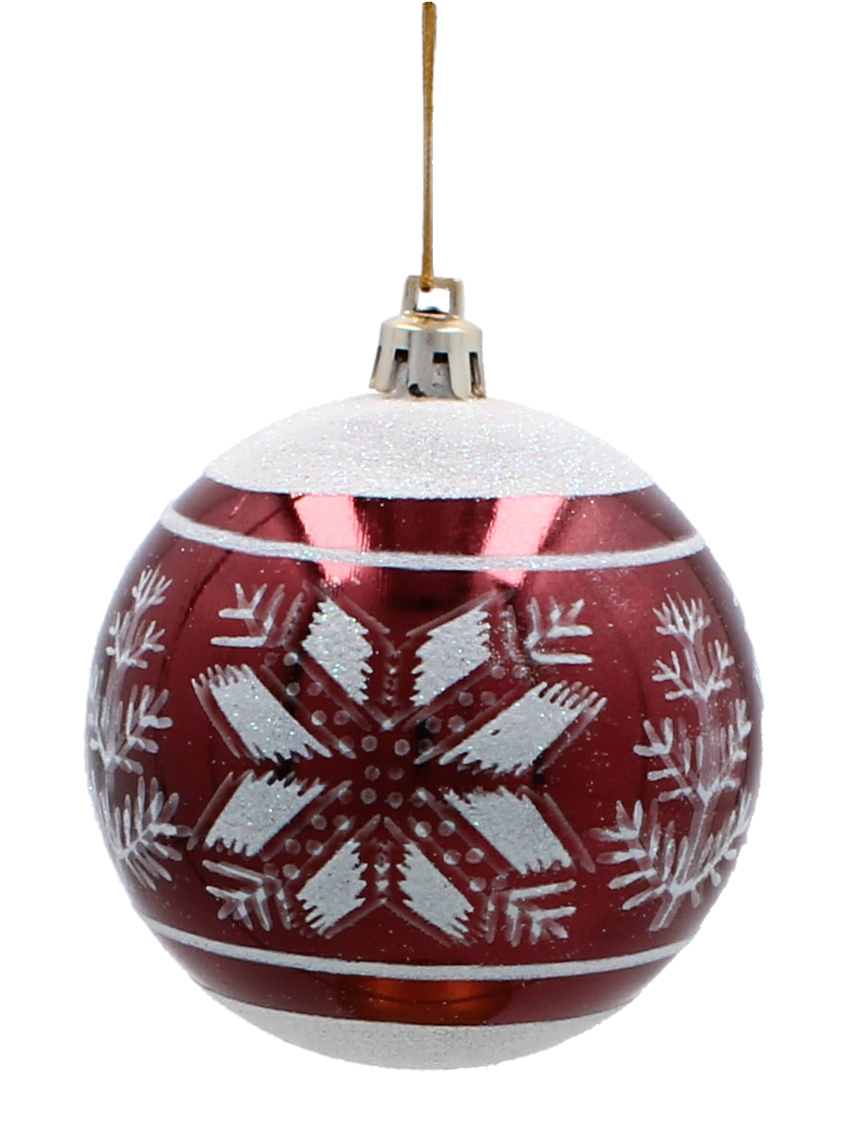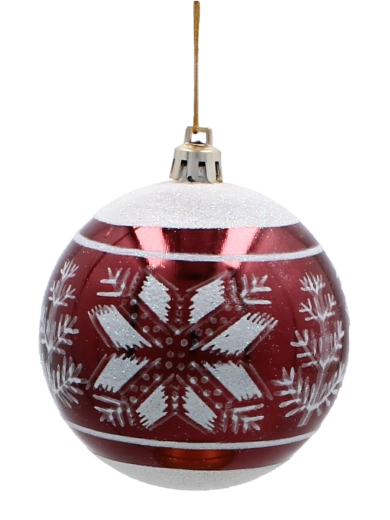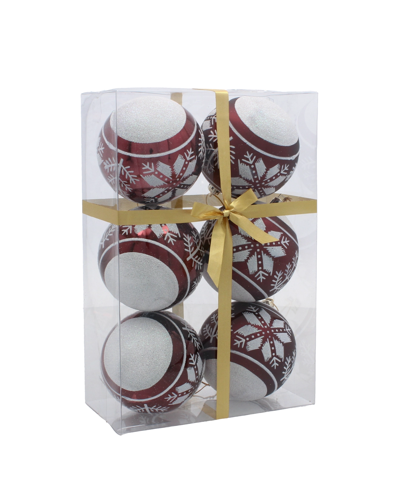 Ce set contient 6 décorations soigneusement assorties dans une riche couleur bordeaux. Chaque boule est ornée de motifs dorés délicats et combine des finitions mates et brillantes pour un contraste saisissant et une touche festive. Le diamètre universel de 8 cm convient aussi bien aux petits qu’aux grands sapins et se marie facilement avec d’autres décorations.