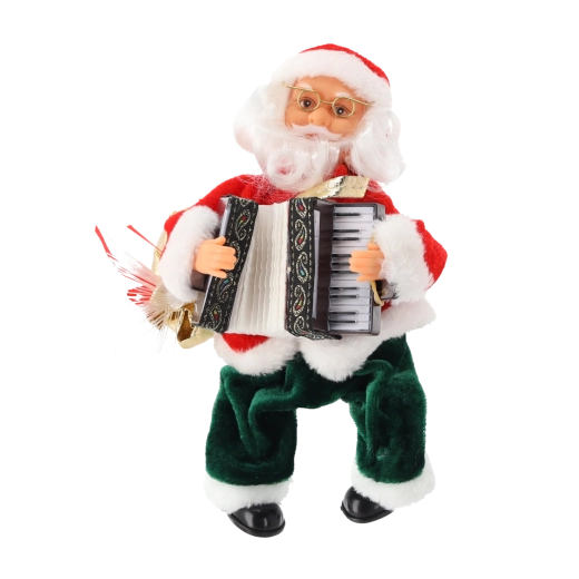 Figurine musicale Père Noël avec accordéon et LED, 25,5 cm