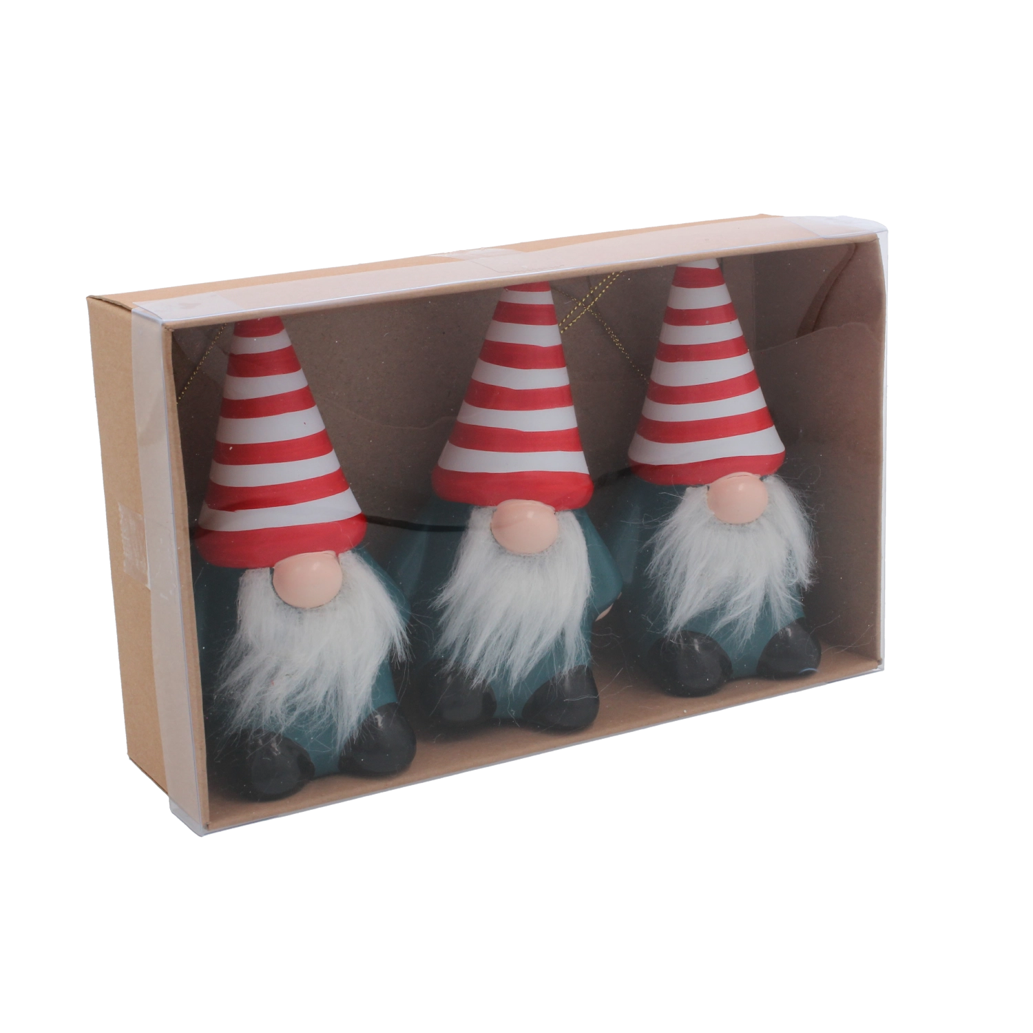 Adorable lot de trois décorations de Noël en forme de lutins CHOMIK qui apporte à votre intérieur une ambiance festive féerique. Plastique léger et résistant, suspension sûre par cordelette et dimensions compactes 6,5 × 5,5 × 12 cm en font une décoration idéale pour le sapin, les couronnes et les emballages cadeaux. Le mélange de couleurs ajoute une touche ludique et originale à votre maison.