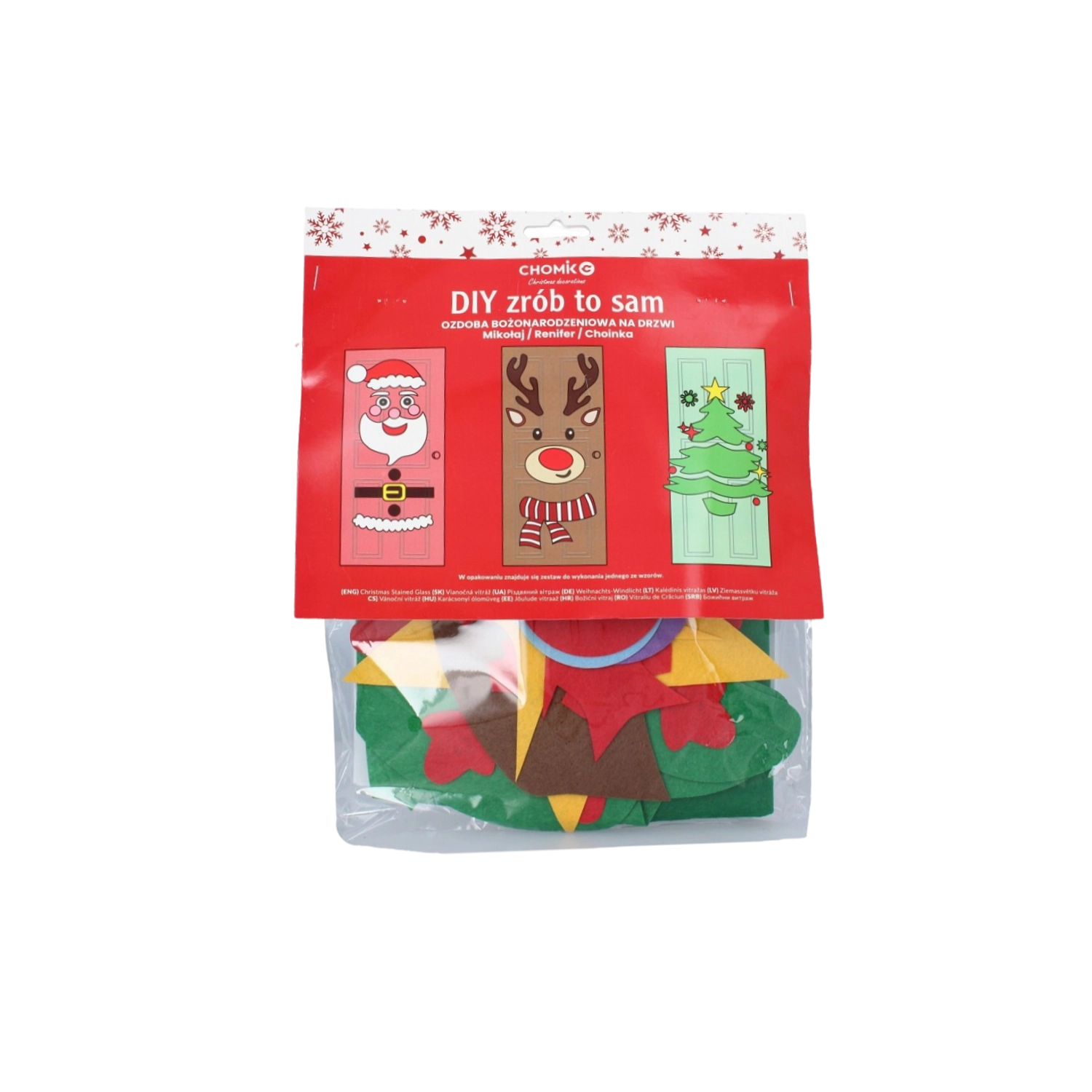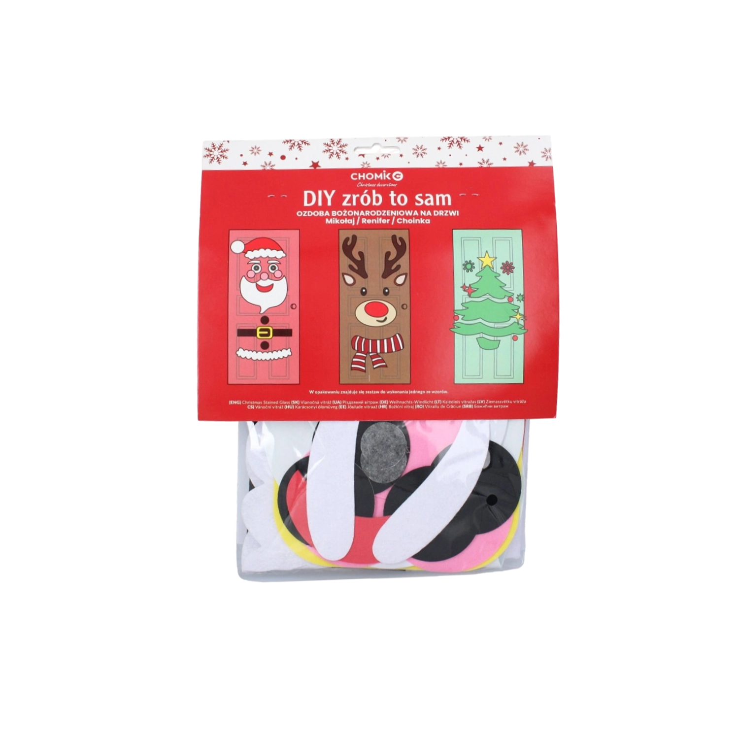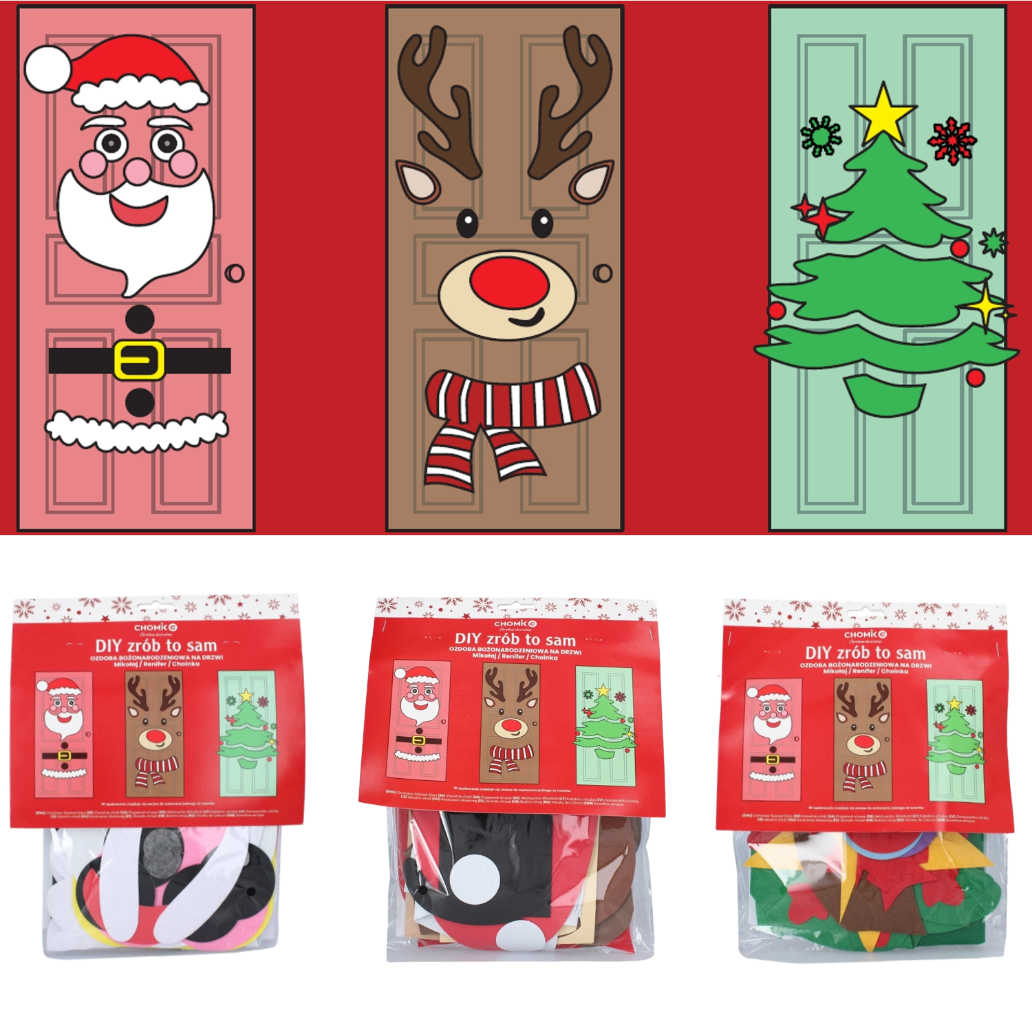 Cette décoration festive transforme n’importe quelle porte intérieure ou d’entrée en un élément de Noël saisissant. Les pièces souples en feutrine et autocollantes se fixent aisément et se réagencent à tout moment – idéal pour les enfants comme pour les adultes. Choisissez parmi les motifs sapin de Noël, PÈRE NOËL ou renne et créez une décoration originale à votre image.