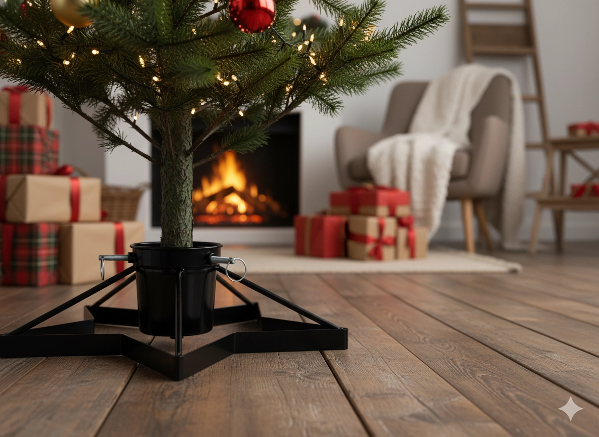Des pieds larges et solides répartissent uniformément le poids du sapin et empêchent le basculement, même avec une décoration généreuse.