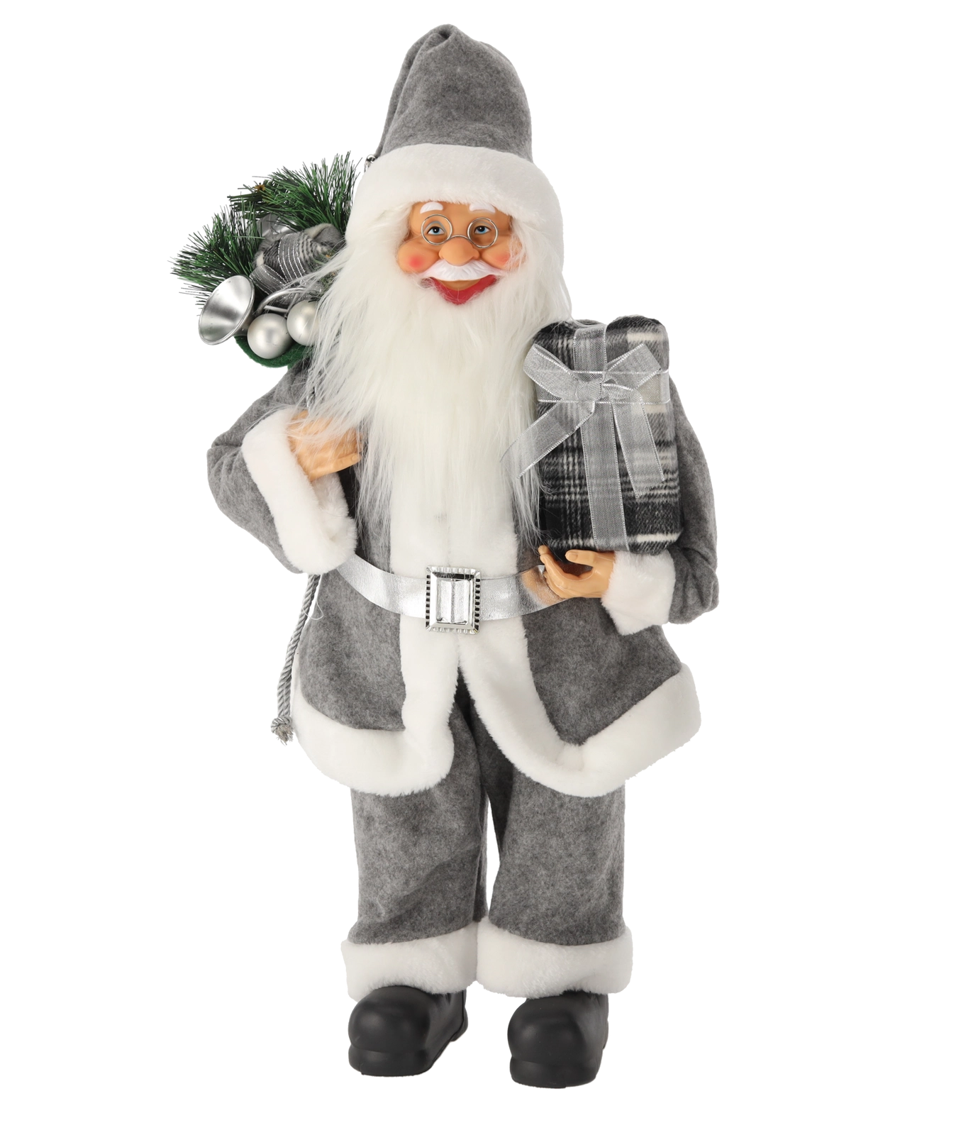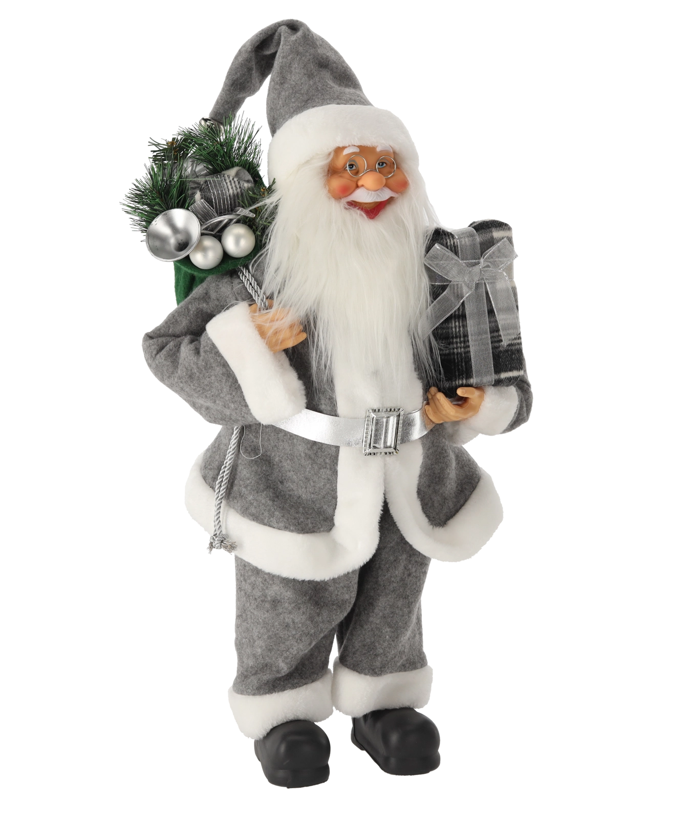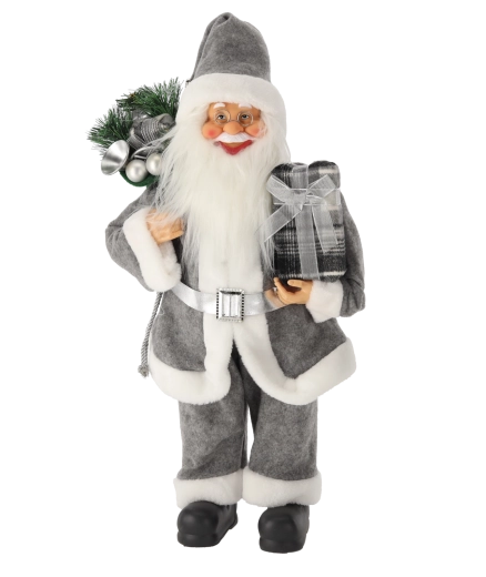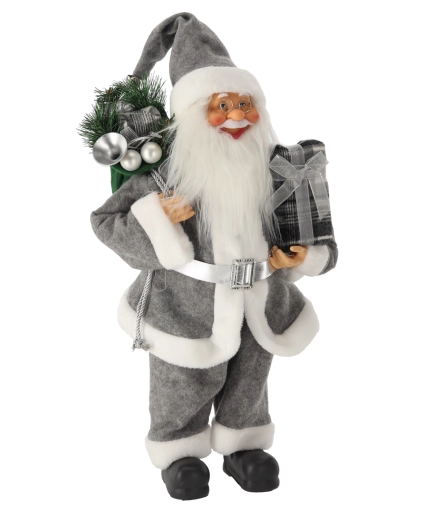 Père Noël gris debout 60 cm – figurine de Noël avec sac de cadeaux