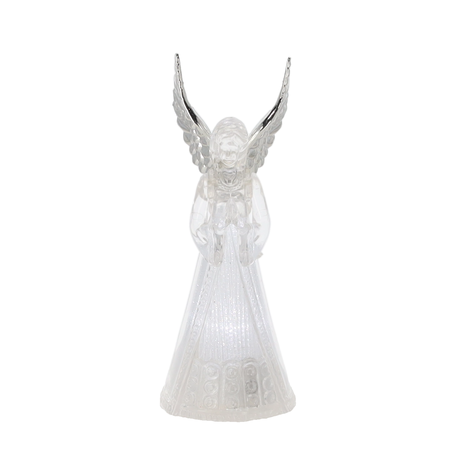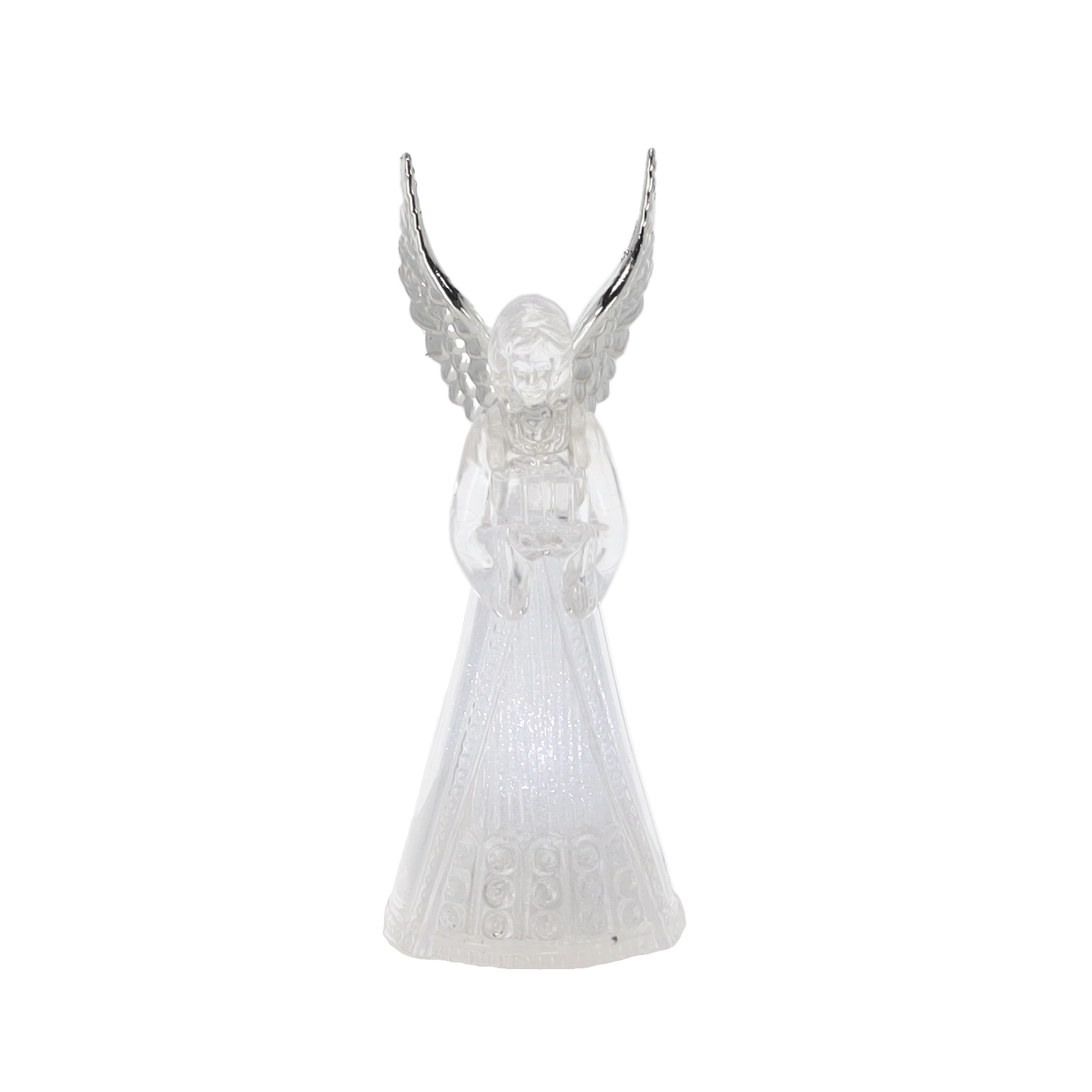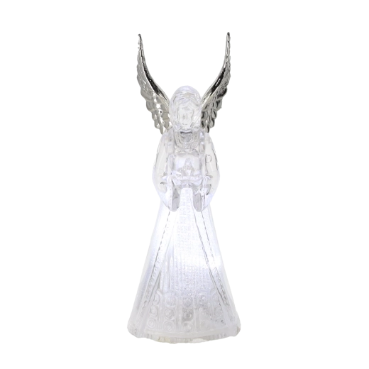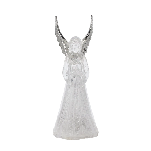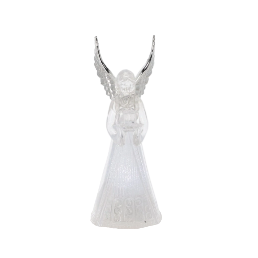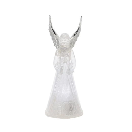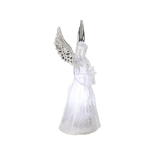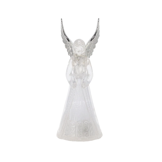 Le corps translucide de l’ange diffuse une lumière blanche froide et crée une atmosphère calme et élégante, idéale pour Noël et les soirées apaisées.