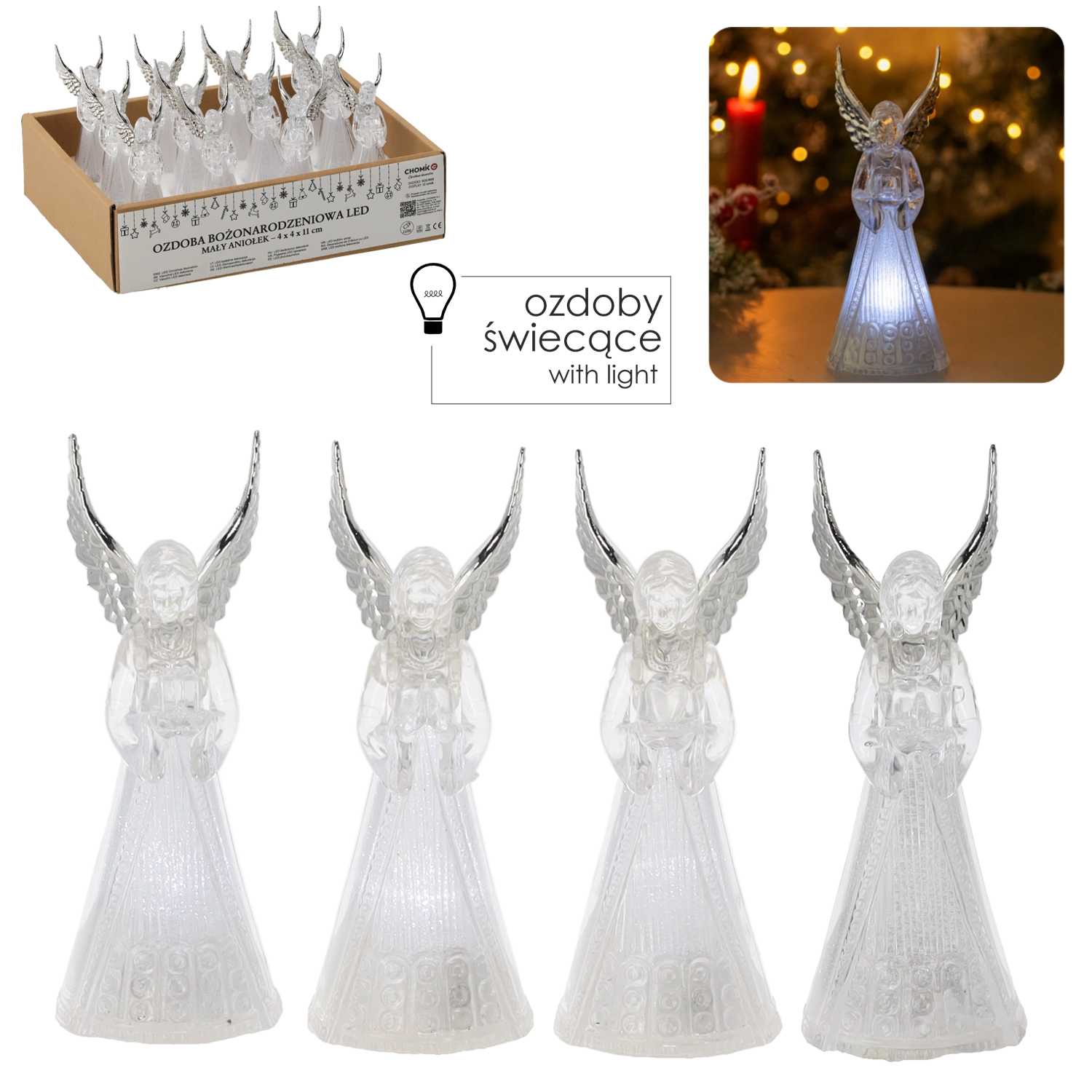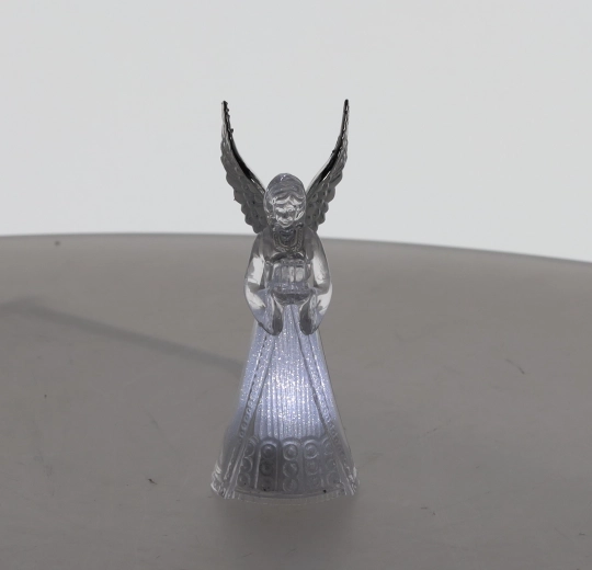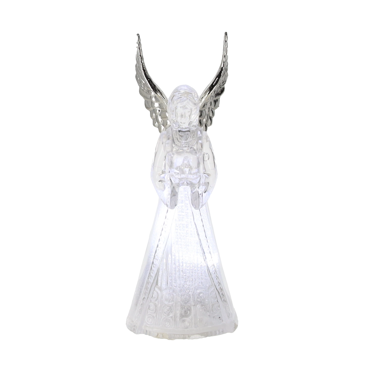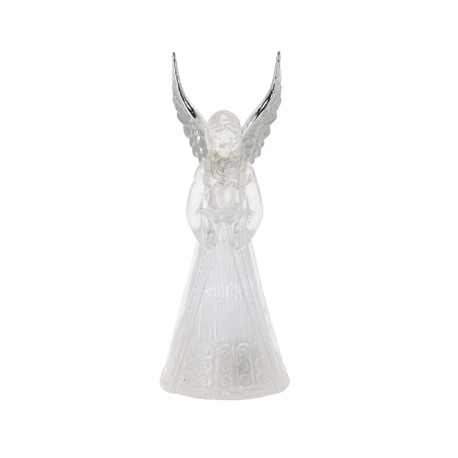 Le corps translucide de l’ange diffuse une lumière blanche froide et crée une atmosphère calme et élégante, idéale pour Noël et les soirées apaisées.