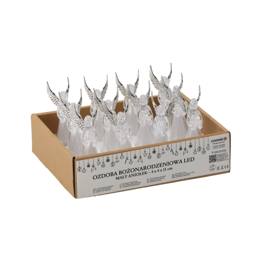 Cette élégante décoration d’ange avec une douce lumière blanche froide illumine tout intérieur. Grâce à ses dimensions compactes de 11 cm, elle convient à une étagère, une table ou un rebord de fenêtre. La figurine en plastique translucide est ornée de ailes détaillées et de motifs délicats sur la robe qui diffusent joliment la lumière. L’alimentation est assurée par 3 piles LR44 (incluses), et le contrôle est simple via un interrupteur coulissant ON/OFF. Une décoration de Noël idéale pour créer une atmosphère féerique.
