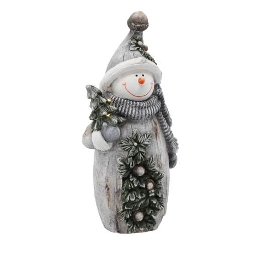 Adorable figurine de Noël représentant un bonhomme de neige avec un petit sapin, qui apportera une ambiance féerique à votre intérieur. Grâce à l’éclairage LED, elle diffuse une lueur douce, est fabriquée en magnésie résistante et convient parfaitement à une étagère, une commode ou un rebord de fenêtre. L’alimentation par 3 piles AAA (non incluses) permet une installation facile sans câbles.