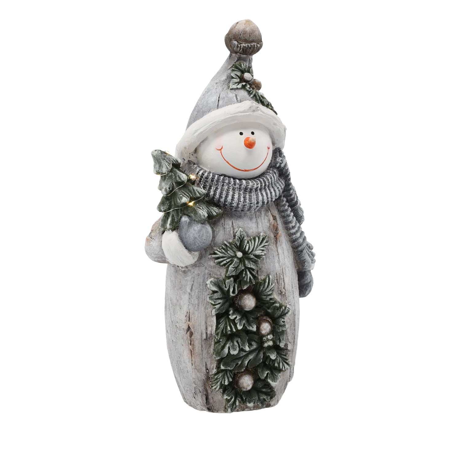 Figurine de Noël bonhomme de neige avec petit sapin à éclairage LED 44 cm