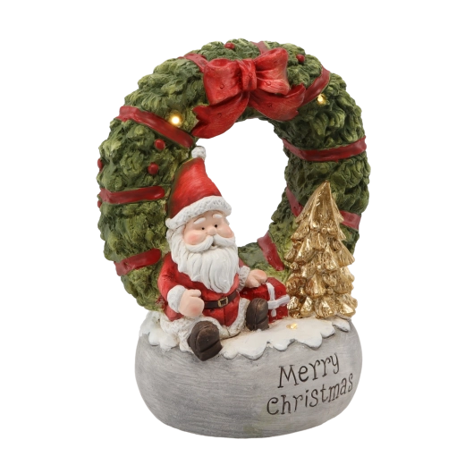 Cette figurine de Noël élégante apporte une atmosphère chaleureuse à votre intérieur. La couronne décorative avec le PÈRE NOËL et l’inscription « Merry Christmas » est dotée d’un doux éclairage LED qui met en valeur les détails et crée une lumière chaleureuse sur une étagère, une commode ou un rebord de fenêtre. Le matériau de qualité en magnésie garantit une résistance et une longue durée de vie.