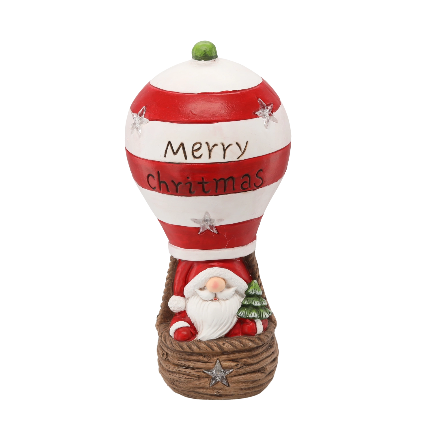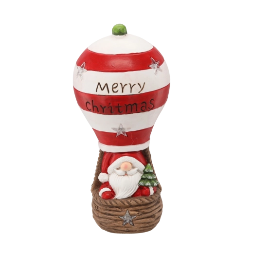 Cette figurine de Noël apporte la magie des fêtes avec un PÈRE NOËL dans une montgolfière à rayures rouge et blanc, ornée de l’inscription « Merry Christmas ». Les lumières LED intégrées diffusent une douce lumière chaude et créent une atmosphère conviviale dans chaque pièce.