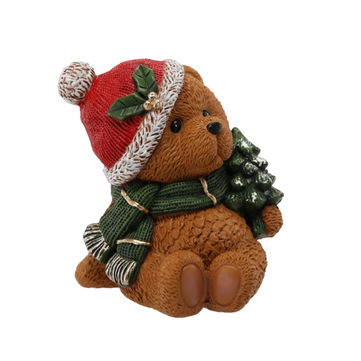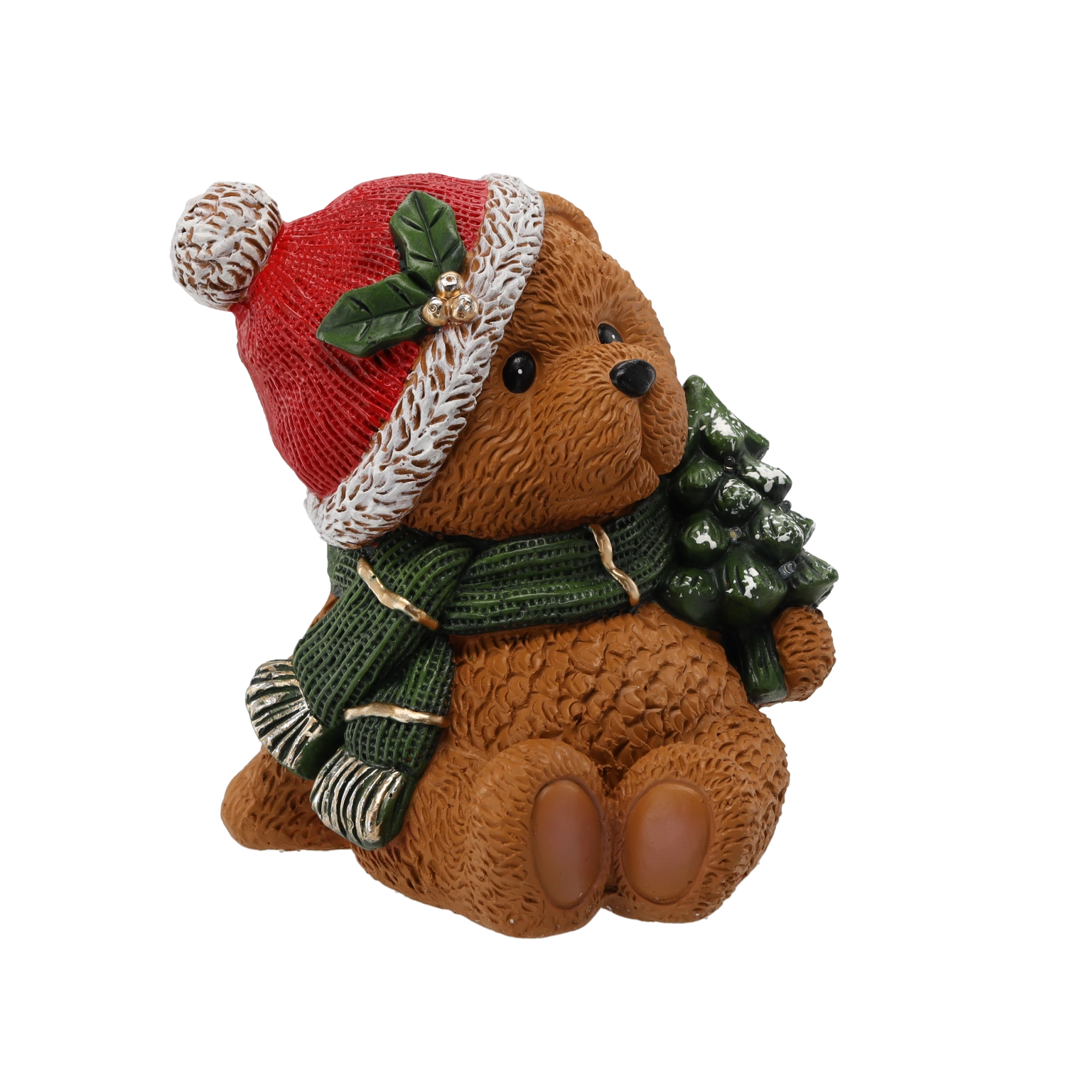 Adorable figurine de Noël représentant un ourson avec un sapin, illuminant votre intérieur grâce à son éclairage LED intégré. Décoration en magnésie résistante aux dimensions imposantes de 27 × 25 × 29 cm, créant une atmosphère festive et chaleureuse. Idéale sur une étagère, une commode ou au pied du sapin.