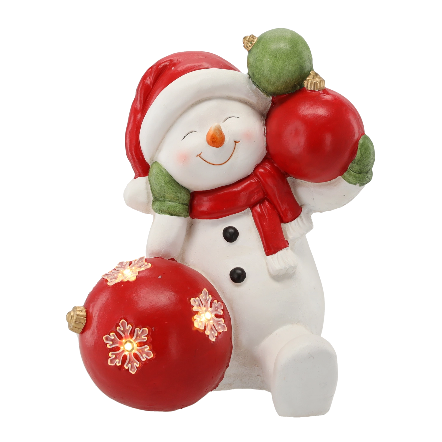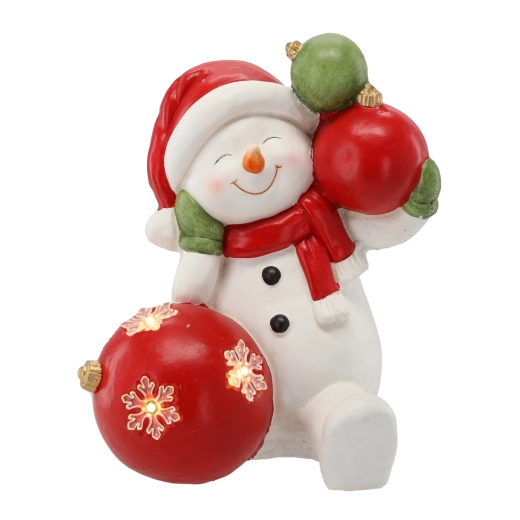 Cette figurine de Noël de bonhomme de neige avec boules, réalisée avec soin, apporte une atmosphère chaleureuse et festive à votre intérieur. La douce lumière LED met en valeur la décoration et crée de jolis accents lumineux pendant les longues soirées d’hiver. Grâce au matériau robuste en magnésie, la décoration est stable et durable.
