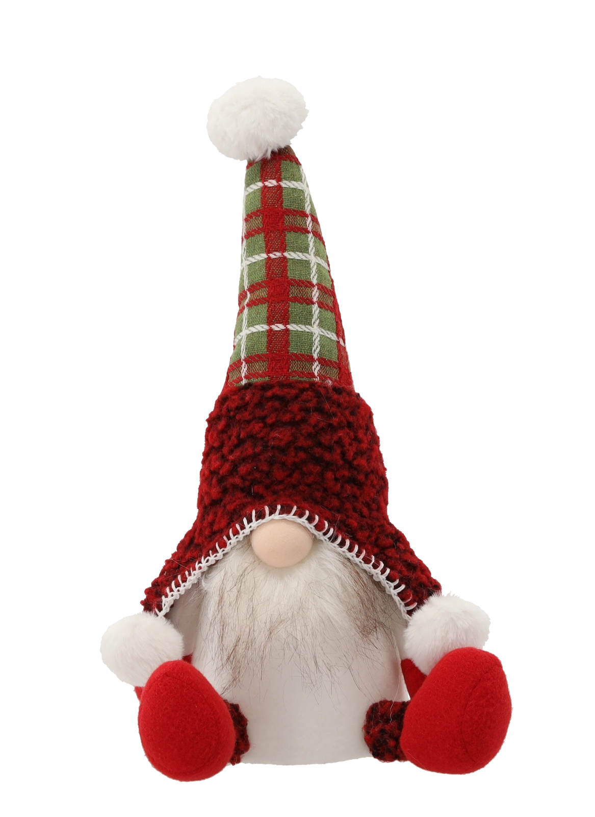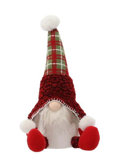 Un bonnet à motif plaid, une barbe duveteuse et des matières moelleuses confèrent à la décoration un look intemporel. Parfait pour les étagères, commodes et tablettes de cheminée.