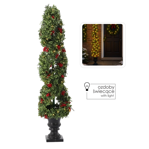 Élégant sapin de Noël avec LED chaudes qui apporte à votre intérieur une ambiance festive féérique. Les branches vertes réalistes, les baies rouges de sorbier et les 100 LED chaudes diffusent une lumière douce et agréable, sans souci d’aiguilles qui tombent. Un cache-pot décoratif stable et une alimentation secteur avec câble de 3 m permettent une installation facile à la maison comme au bureau.