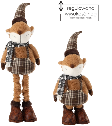 Charmante décoration de Noël en forme de renard, que vous pouvez facilement ajuster de 65 à 100 cm grâce à ses pattes télescopiques. Des couleurs traditionnelles de Noël élégantes, des matériaux de qualité et une finition soignée en font une décoration durable et résistante pour tout intérieur.