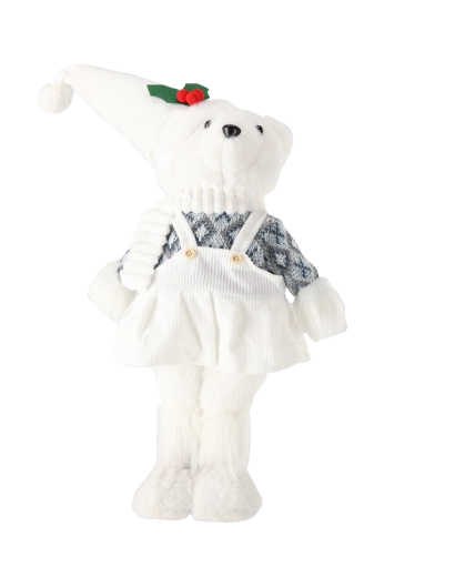 L’ours séduit par sa surface moelleuse, son long bonnet pointu et son pull à motifs. Les détails brodés en toute sécurité lui donnent un air mignon et chaleureux.