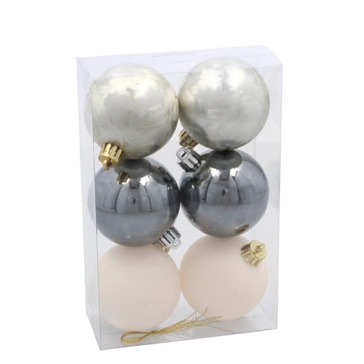 Chaque boule est équipée d’une cordelette décorative pour une suspension facile sur le sapin, la couronne ou la guirlande. Les différentes finitions de surface – brillant, mat et pailleté – apportent profondeur, contraste et étincelle festive à vos arrangements. Un emballage pratique en tube facilite le rangement et la protection des décorations après Noël.