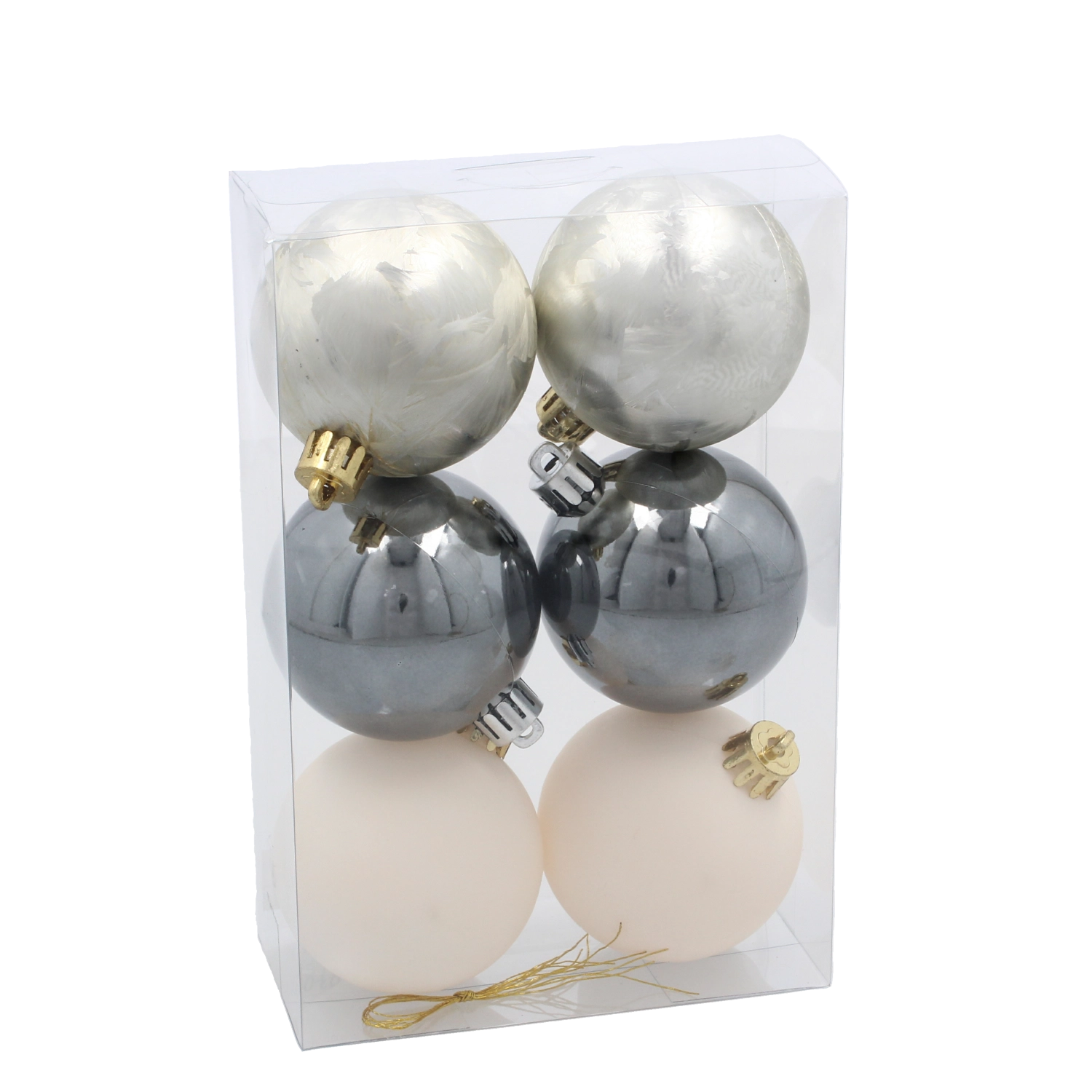 Ce set design de boules de Noël dans des tons discrets de champagne, gris et blanc offre une esthétique équilibrée qui convient aussi bien aux décorations traditionnelles que modernes. Grâce au plastique incassable, profitez de la beauté du verre sans crainte de casse et avec une longue durabilité saison après saison.