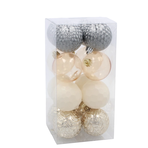 Créez une décoration de Noël parfaitement assortie avec le set de 16 ornements CHOMIK dans des tonalités intemporelles de champagne, gris et blanc. La combinaison de finitions lisses et décorées confère à votre sapin et à vos décorations un caractère luxueux et moderne, qui s’intègre aussi bien aux intérieurs traditionnels que contemporains.