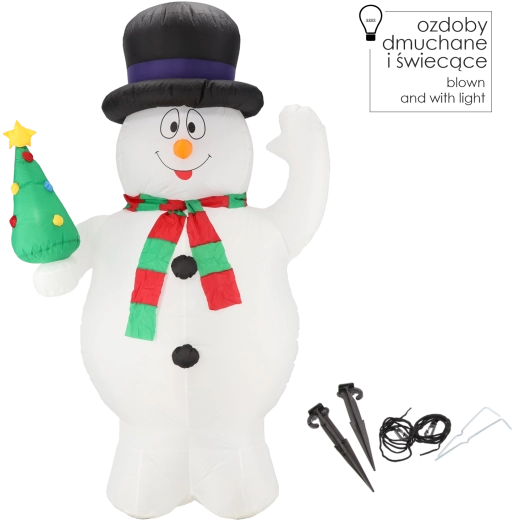 Sa construction robuste avec indice de protection IP44 convient à une utilisation en extérieur. Le gonflage automatique vous fait gagner du temps – il suffit de le brancher et il est prêt en un instant. Une excellente solution pour les maisons familiales, restaurants, hôtels et magasins, partout où vous avez besoin d’un grand élément de Noël bien visible.