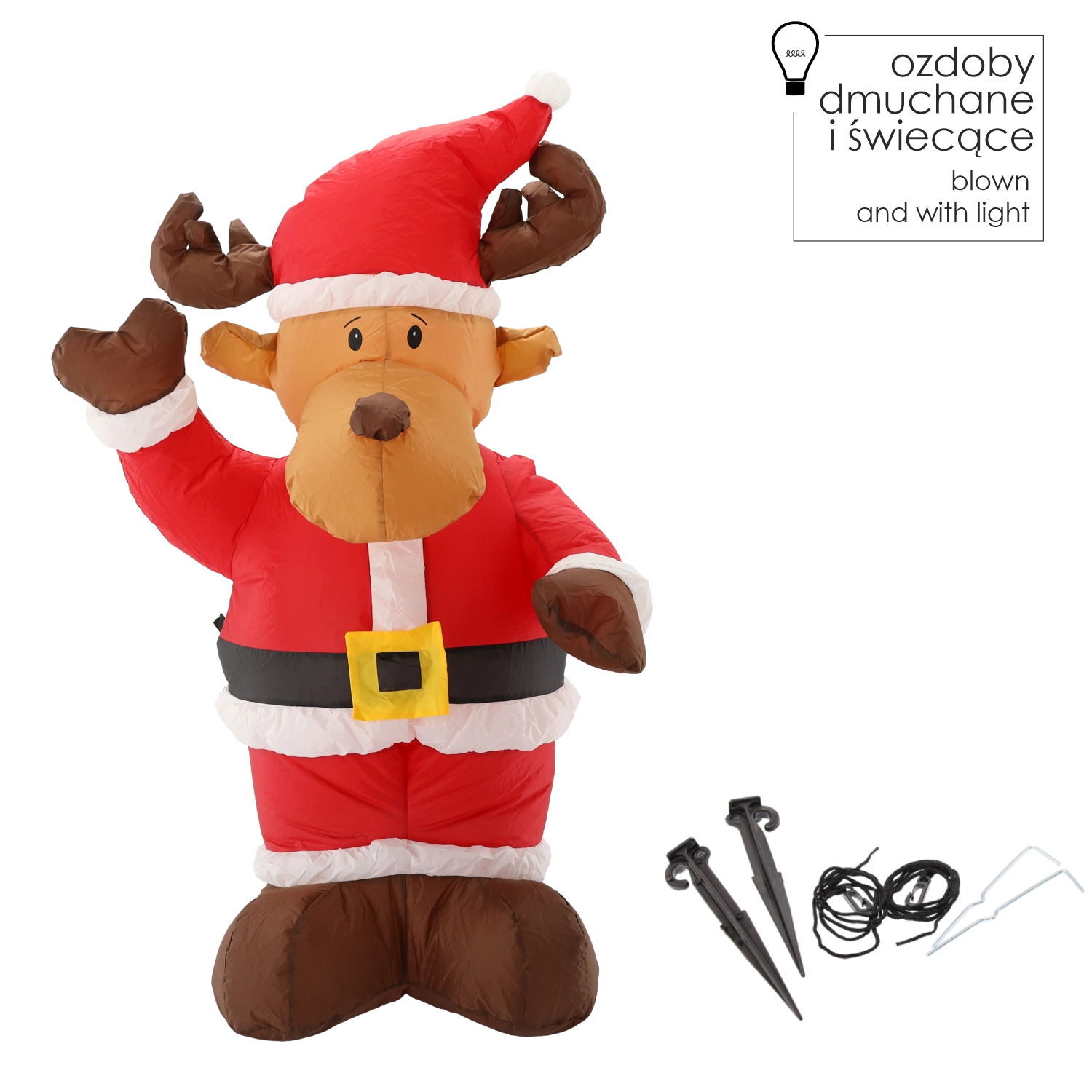 Illuminez votre maison et votre jardin avec ce renne gonflable adorable, coiffé d’un bonnet du Père Noël et haut de 135 cm. Grâce au rétroéclairage LED intégré, il se distingue de jour comme de nuit, le gonflage automatique rapide assure une utilisation aisée et la résistance aux intempéries (IP44) permet une installation extérieure en toute tranquillité. Le colis comprend également des piquets d’ancrage pour plus de stabilité.