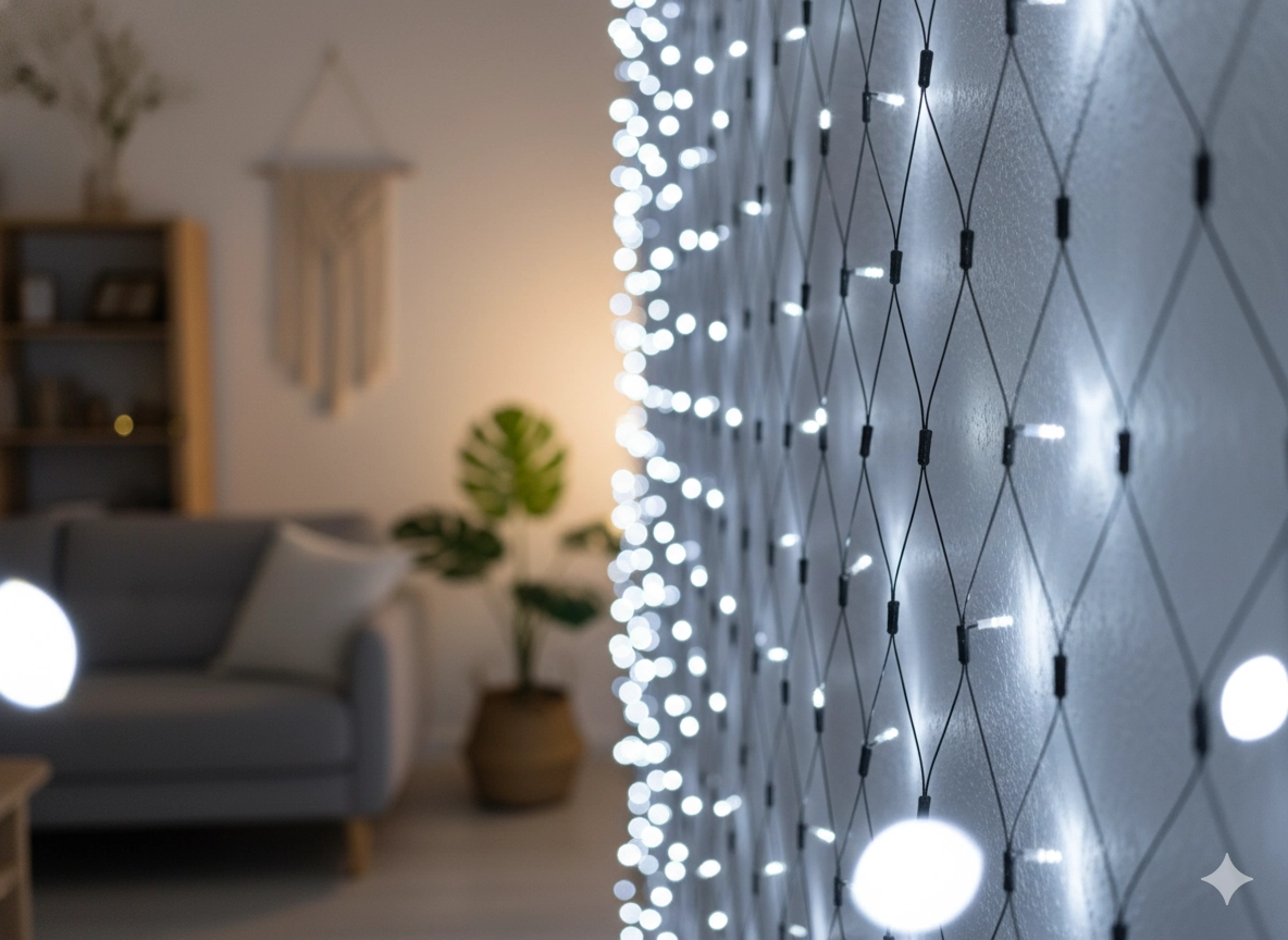 La structure en filet avec un dense maillage de LED garantit une lumière uniforme sans zones sombres – parfaite pour les murs, vitrines et décorations festives.