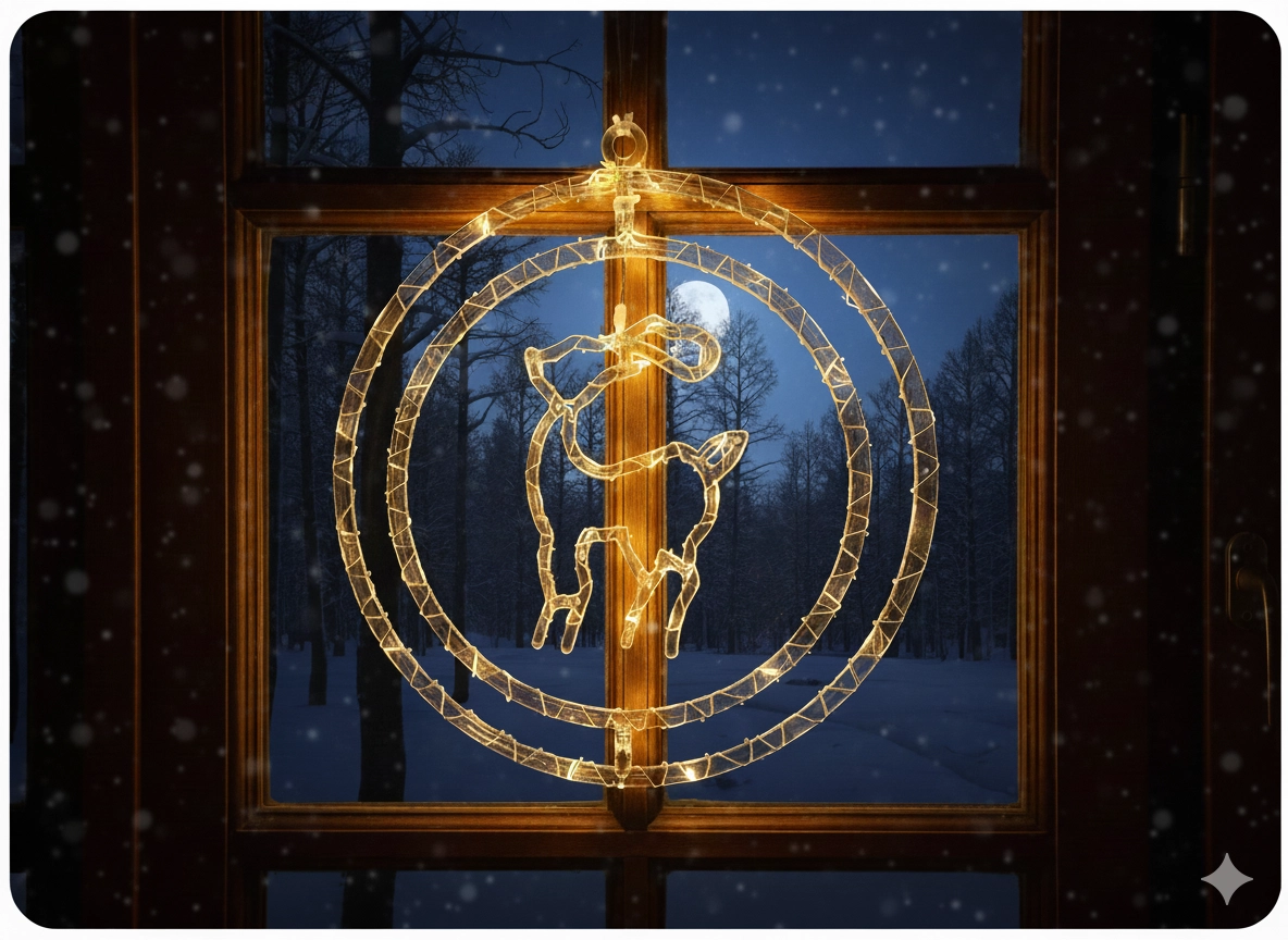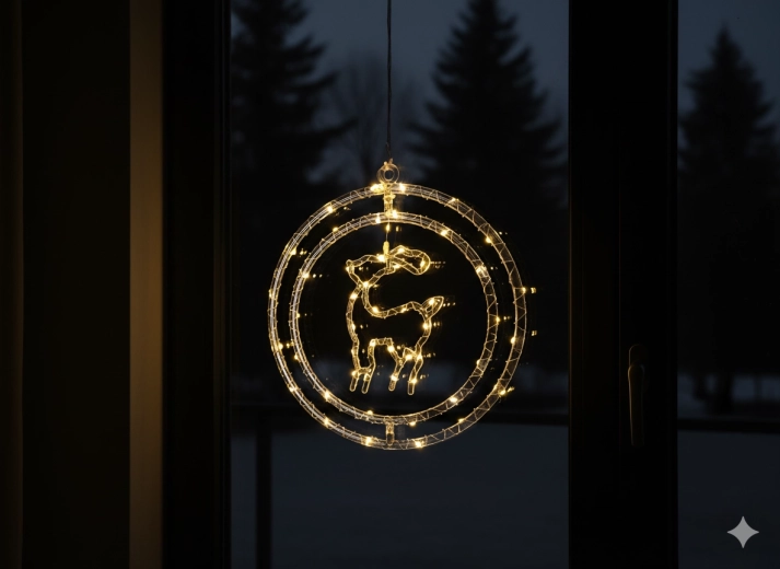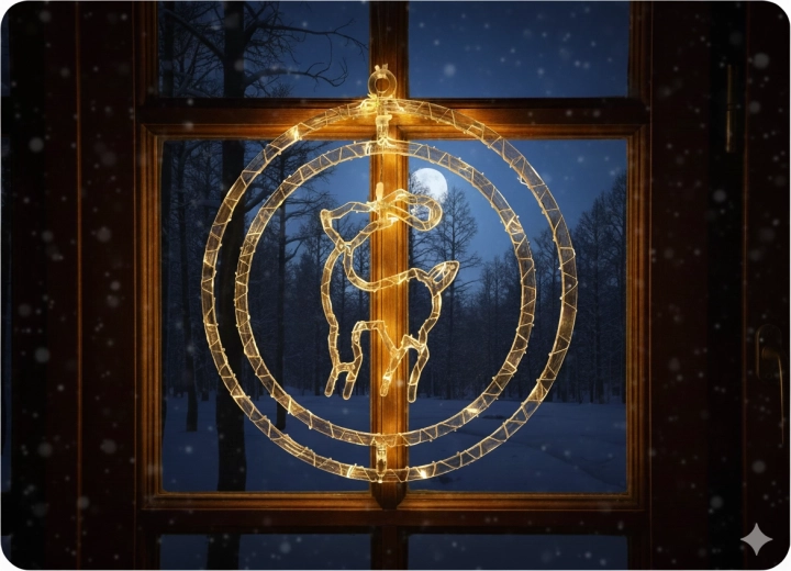 Apportez la magie de Noël à la maison avec une élégante décoration de fenêtre en forme de renne dans un cercle. 50 micro LED délicates brillent en blanc chaud et créent une atmosphère chaleureuse. Grâce à l’alimentation par piles AA, vous pouvez la placer n’importe où sans câbles, et le câble transparent offre un rendu discret et épuré – idéal pour la fenêtre, une étagère ou un rebord.
