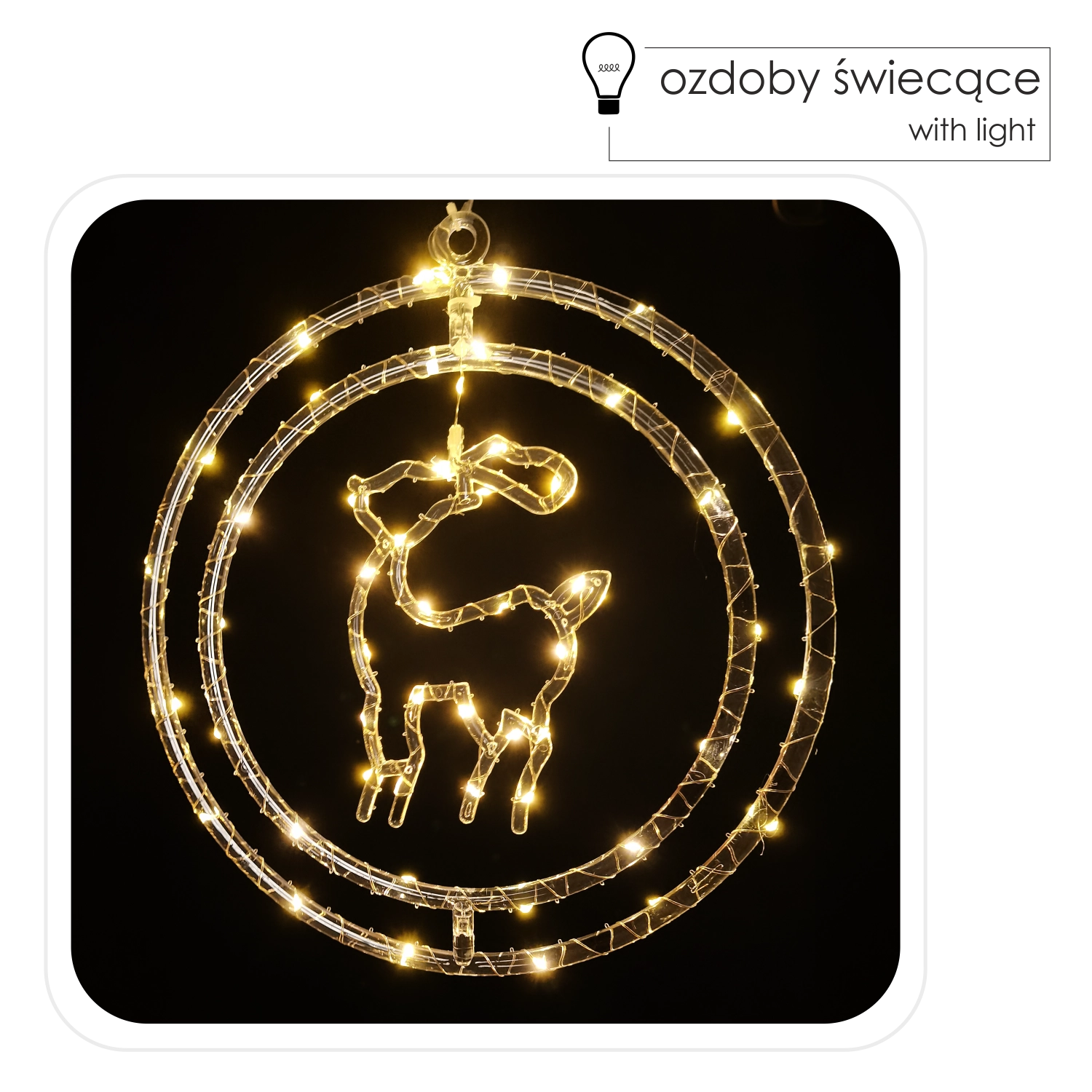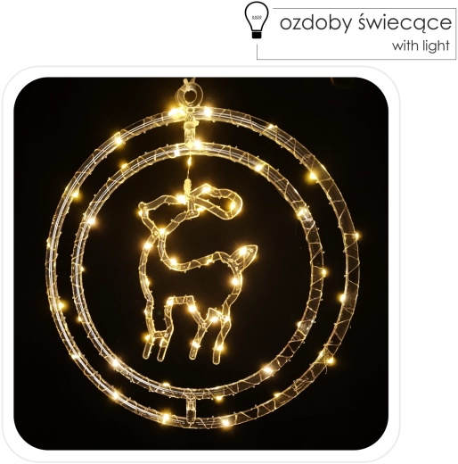 Cette décoration de Noël stylée représentant un renne dans un cercle illuminera vos soirées d’une lumière blanc chaud agréable. Grâce à ses 50 micro LED, elle offre un rendu à la fois délicat et remarquable, tandis que l’alimentation par 3× AA assure une liberté d’emplacement sans prise.