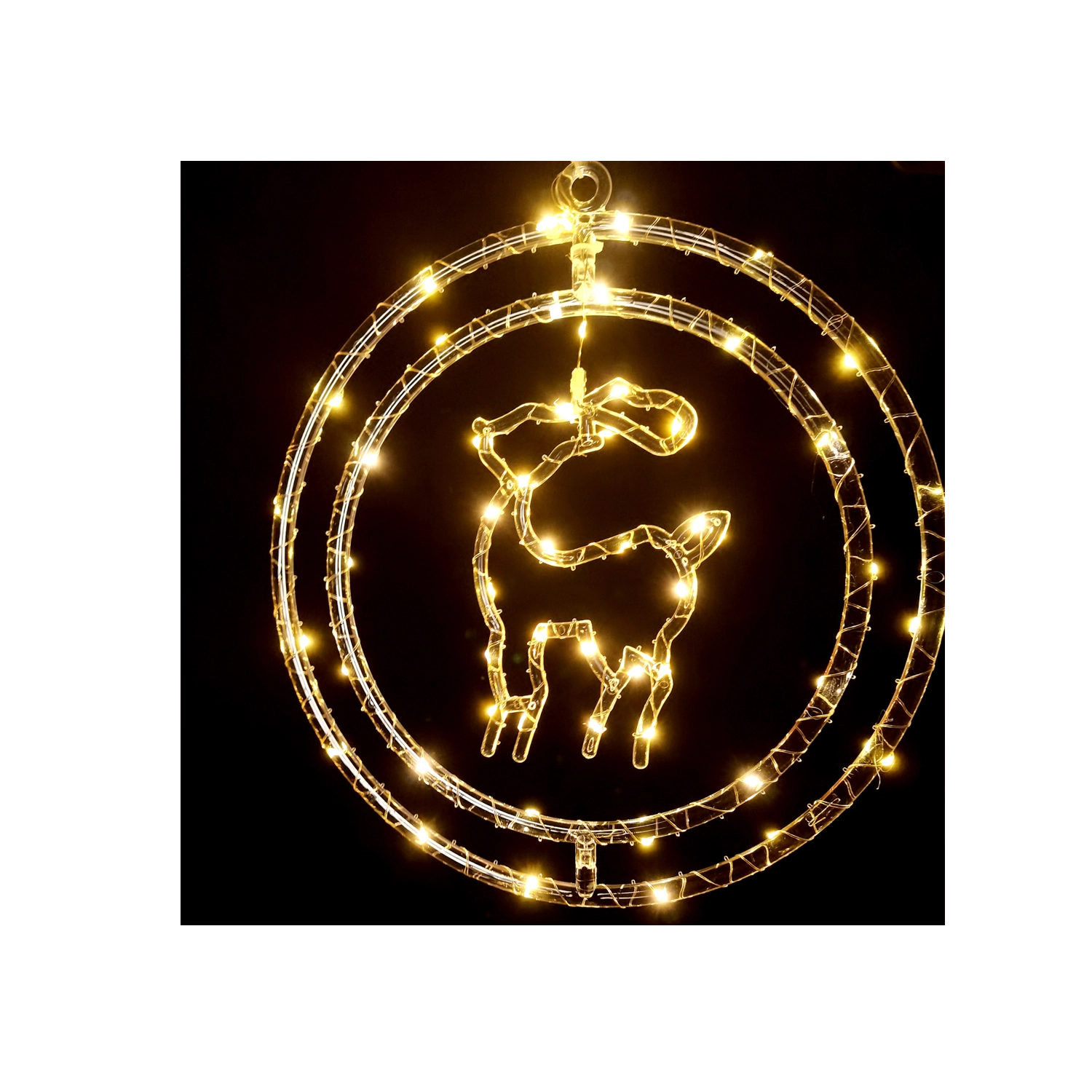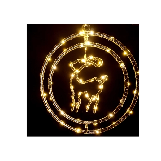 Décoration de fenêtre de Noël – renne LED dans un cercle, blanc chaud, à piles