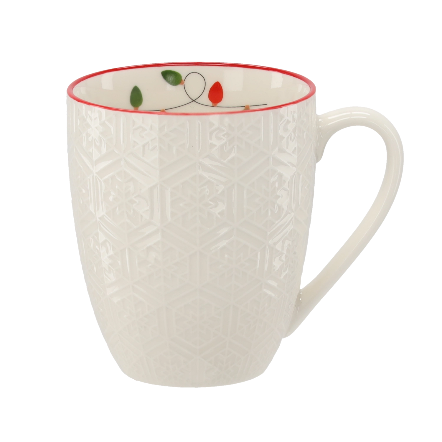 Un délicat relief géométrique combiné à un bord rouge confère au mug une allure exceptionnelle qui sublime l’atmosphère de Noël à chaque repas.