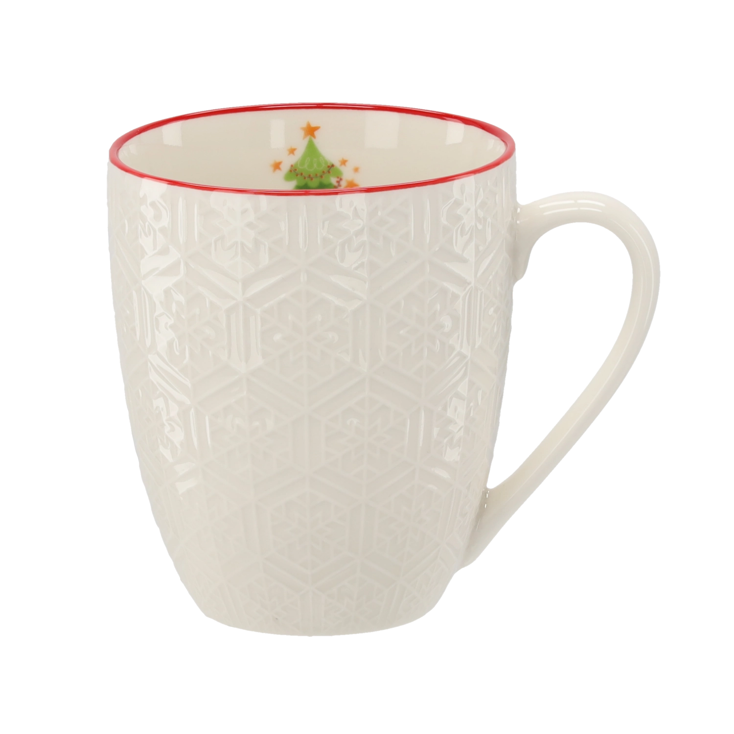 Mug de Noël en porcelaine 400 ml avec relief et bord rouge