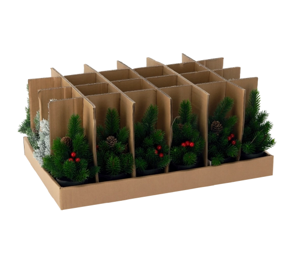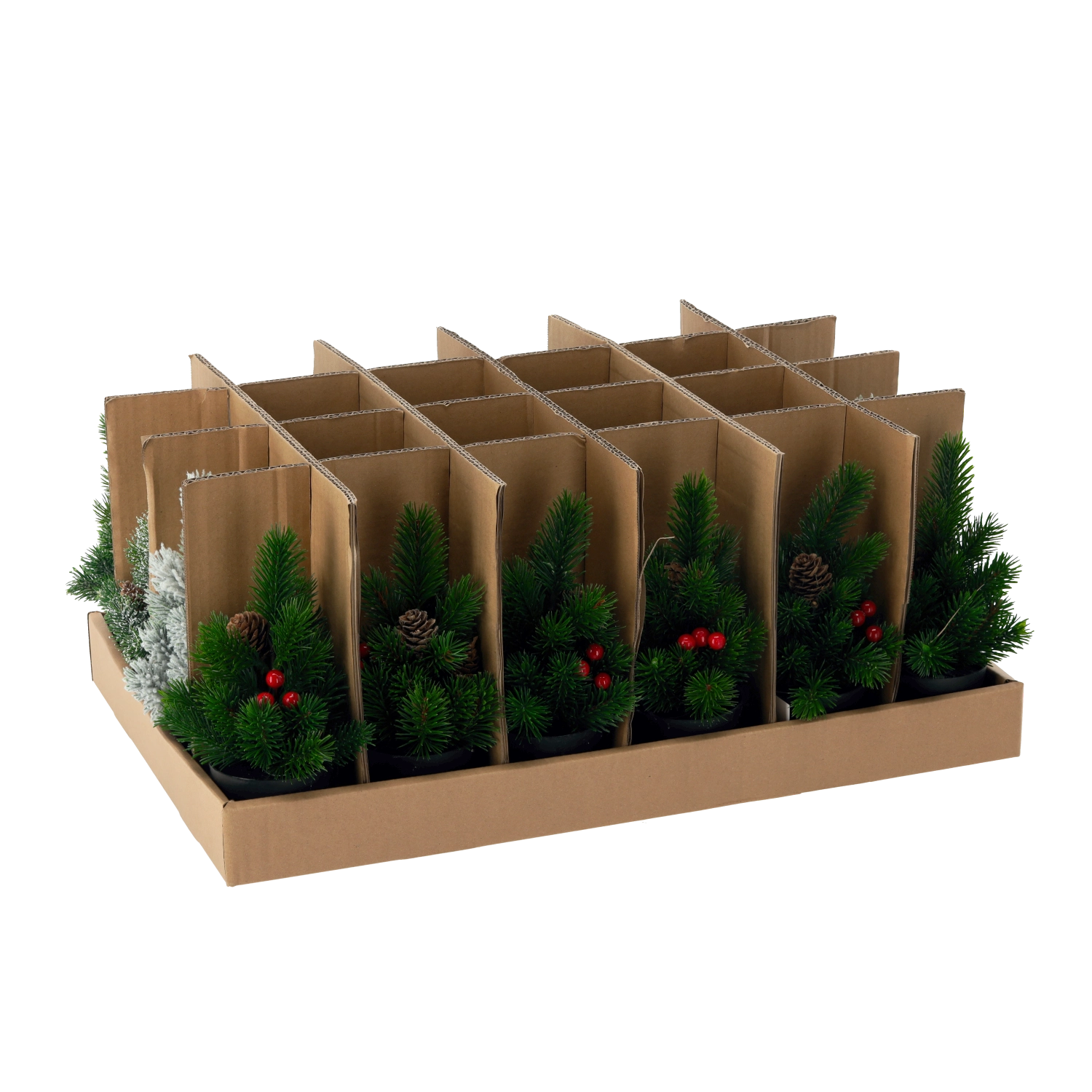 Sans arrosage, sans chute d’aiguilles et sans souci – cette décoration sans entretien garde sa forme et sa couleur tout au long de la saison. Grâce à ses dimensions compactes de 21 cm, c’est un excellent choix pour les bureaux, cafés et maisons, et il complète à merveille vos compositions festives.