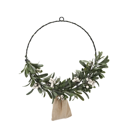 Élégante couronne de Noël de 40 cm de diamètre avec gui réaliste et fines baies blanches, illuminant votre intérieur grâce à 30 petites LED blanc chaud. L’anneau métallique minimaliste et l’aspect naturel du feuillage créent une décoration stylée pour porte et mur, apportant une ambiance festive chaleureuse. Alimentation par 3× piles AA pour une installation facile sans câbles.
