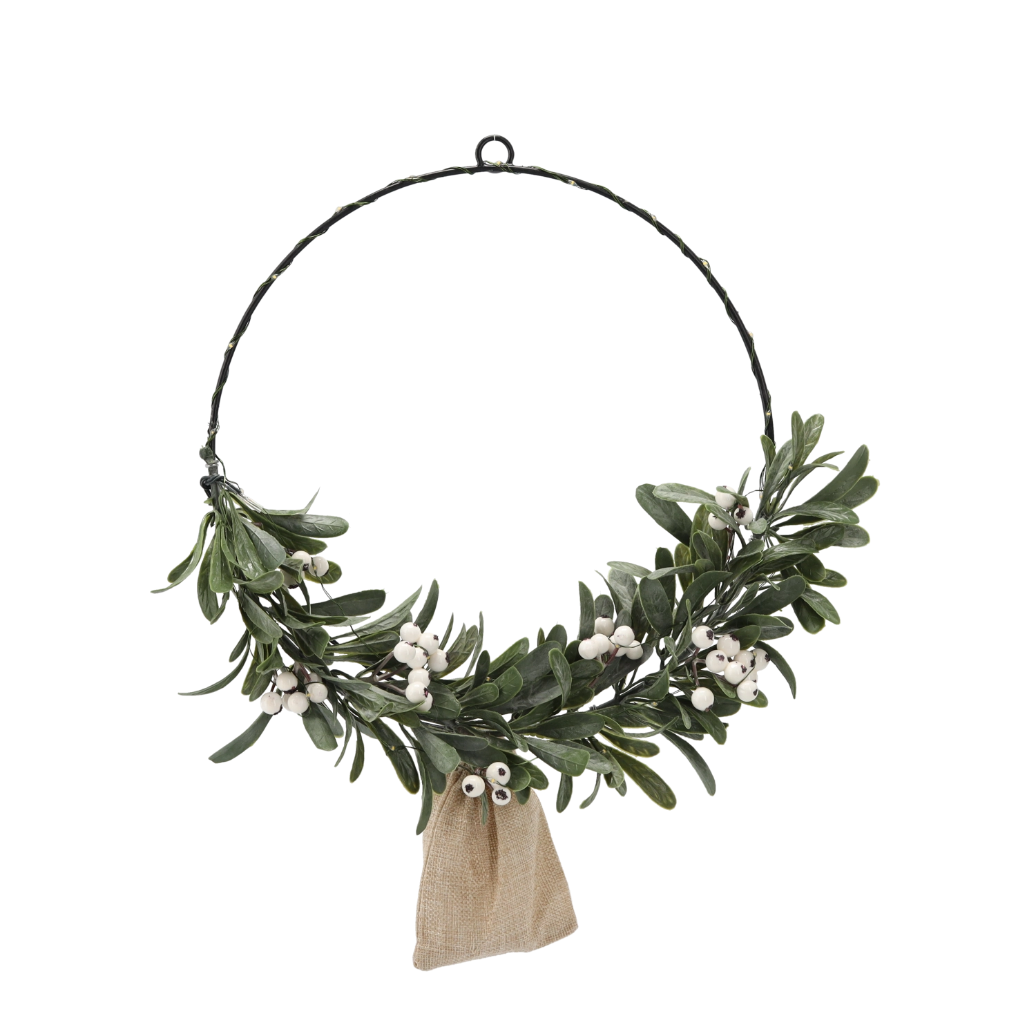 • Design élégant : anneau métallique noir, feuillage vert et baies blanches pour un rendu naturel.