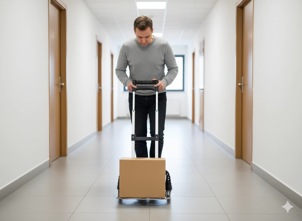La hauteur réglable de la poignée et la large base pliante assurent un transport confortable et sécurisé des cartons et des bagages.