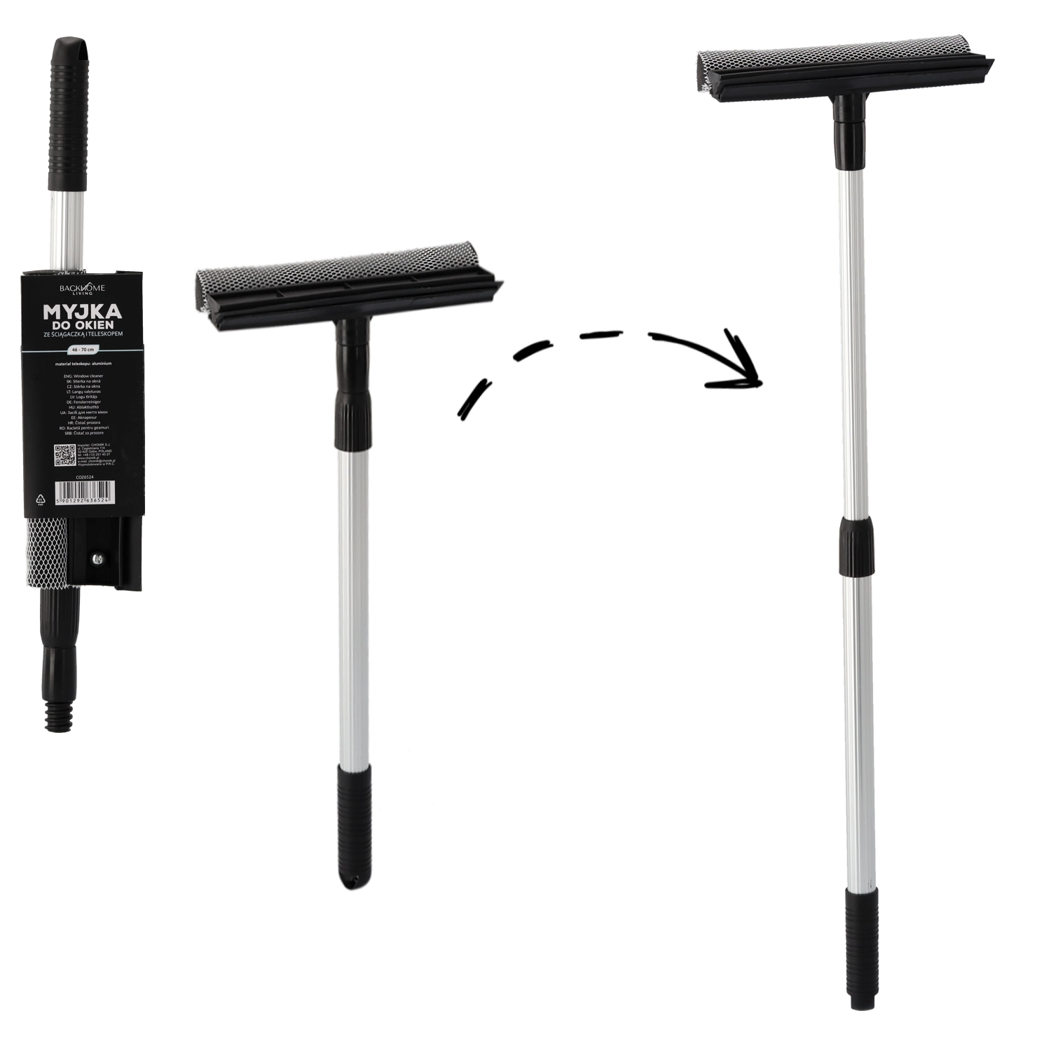 Pratique, le lave-vitres télescopique avec tête combinée pour laver et racler assure un nettoyage rapide et sans traces des fenêtres, miroirs et vitrages. La poignée en aluminium légère, réglable de 46–70 cm, facilite l’accès en hauteur sans échelle, tandis que la raclette en caoutchouc et l’éponge à mailles éliminent efficacement l’eau et les saletés. La prise en main ergonomique antidérapante améliore le confort d’utilisation.