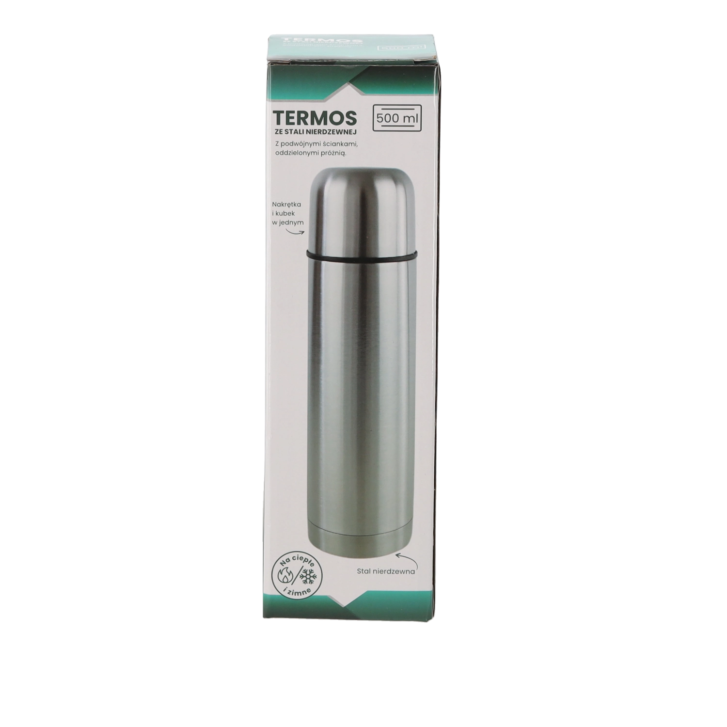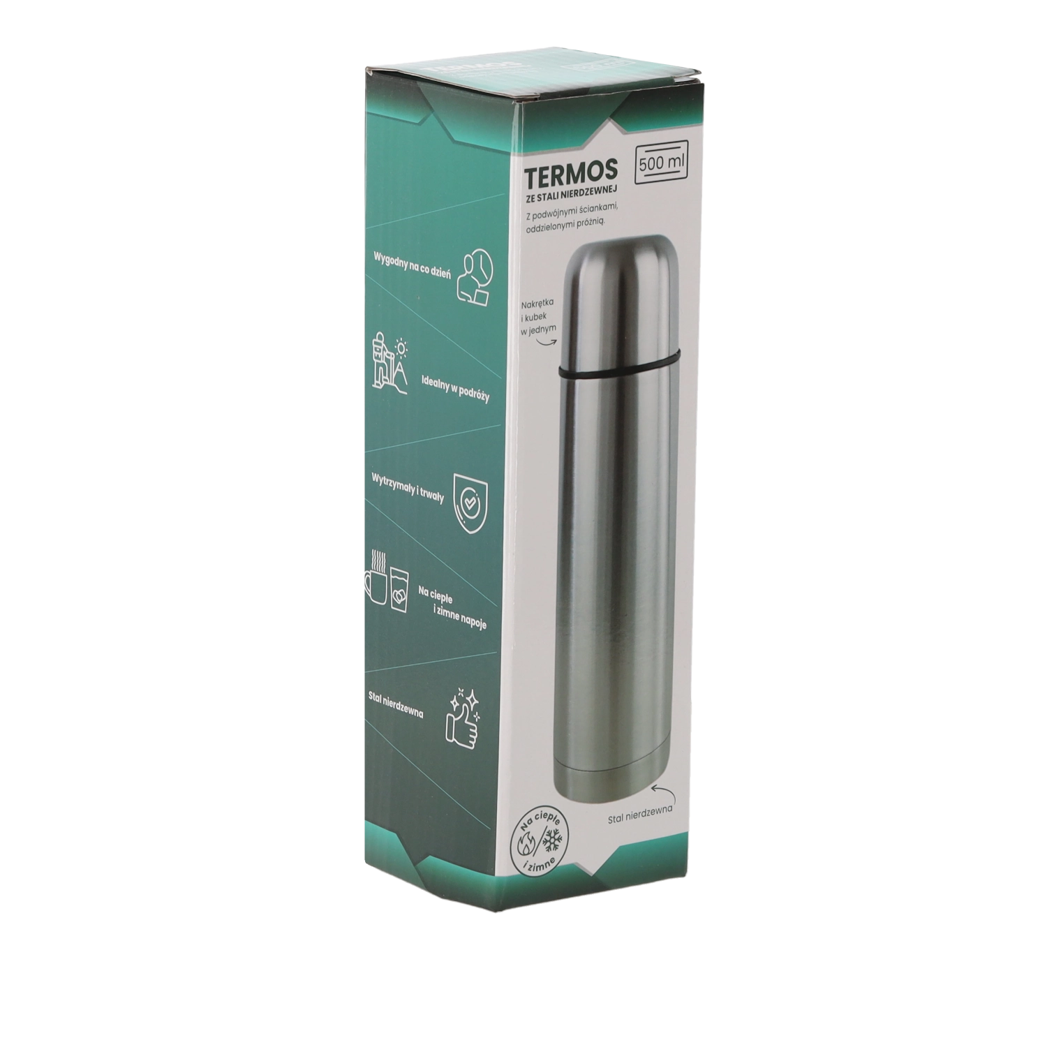 Thermos pratique et résistant de 500 ml avec double paroi en acier inoxydable, qui garde les boissons chaudes ou froides pendant longtemps. Grâce à une isolation de qualité, profitez d’une stabilité thermique jusqu’à 24 heures, de dimensions compactes et d’un poids léger pour une utilisation quotidienne en voyage, au travail ou pendant le sport.