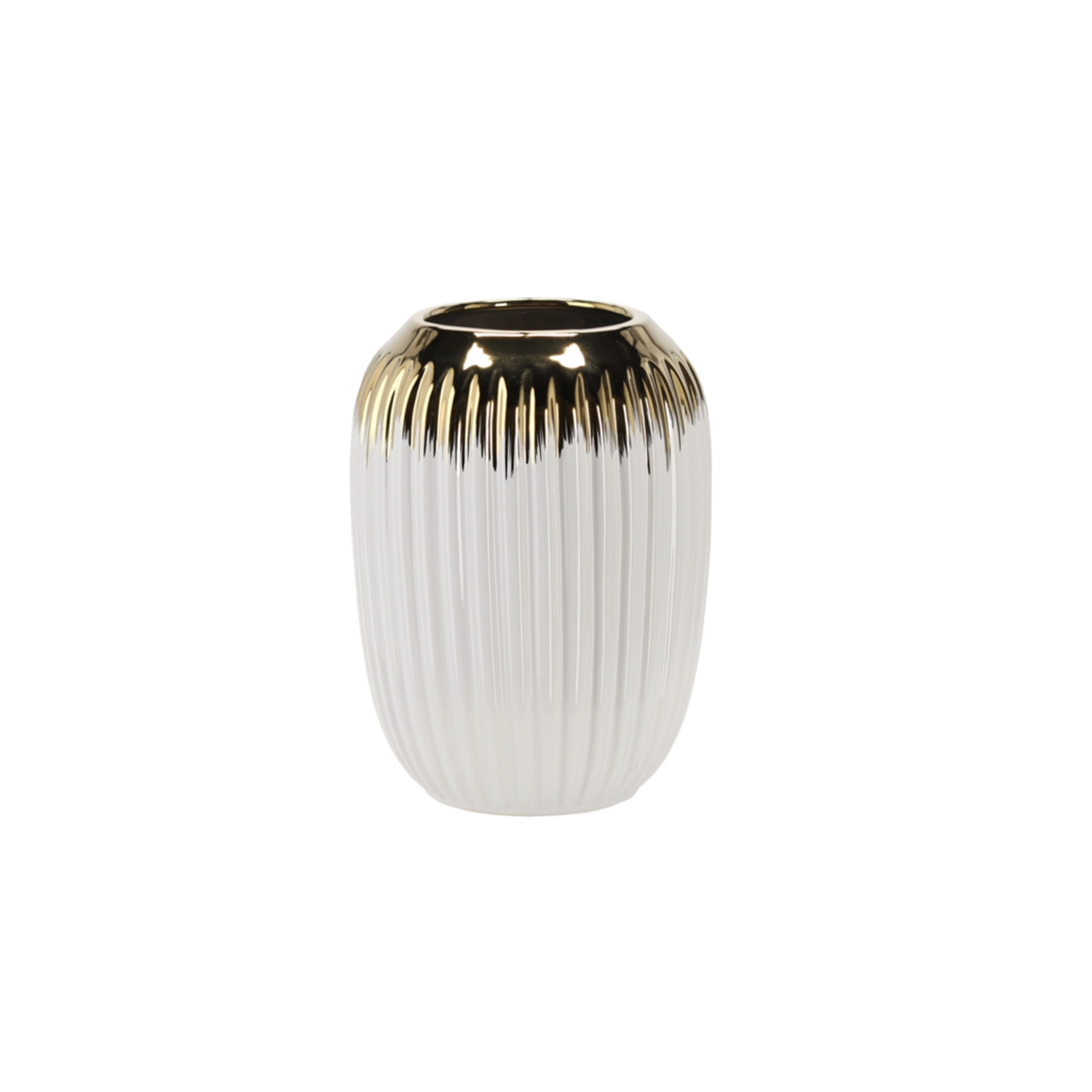 Cette vase blanc-or au style raffiné met en valeur la beauté des fleurs fraîches comme des fleurs séchées, tout en constituant un élément décoratif marquant. La céramique associée à un accent doré brillant sublime aussi bien les intérieurs modernes que classiques.