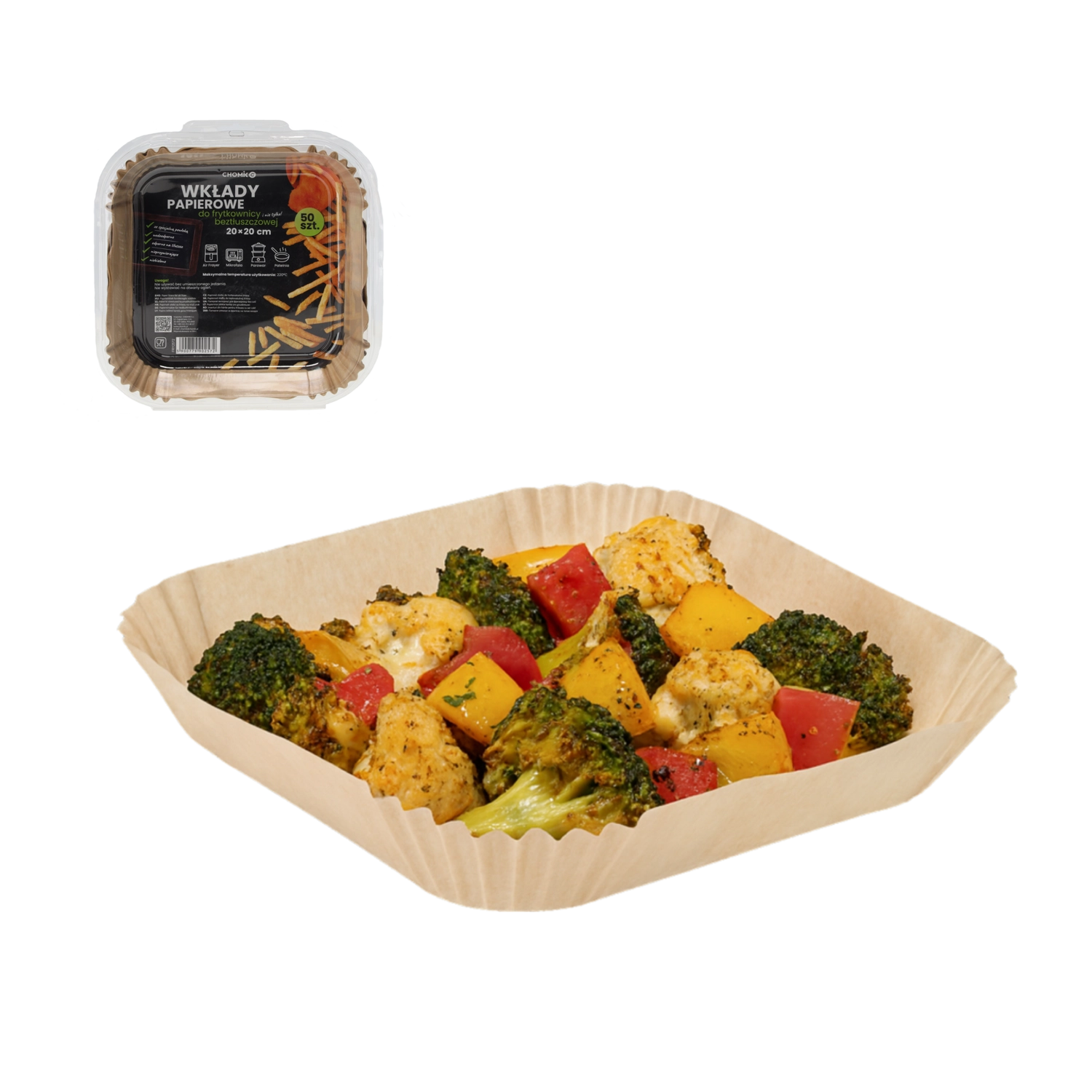 Fabriqués en papier non blanchi de couleur brun naturel, ils sont sans danger pour le contact alimentaire (certifications FDA, LFGB, FSC) et conçus pour un usage polyvalent : friteuse à air, four à micro-ondes, cuisson vapeur et cuisson à la poêle.