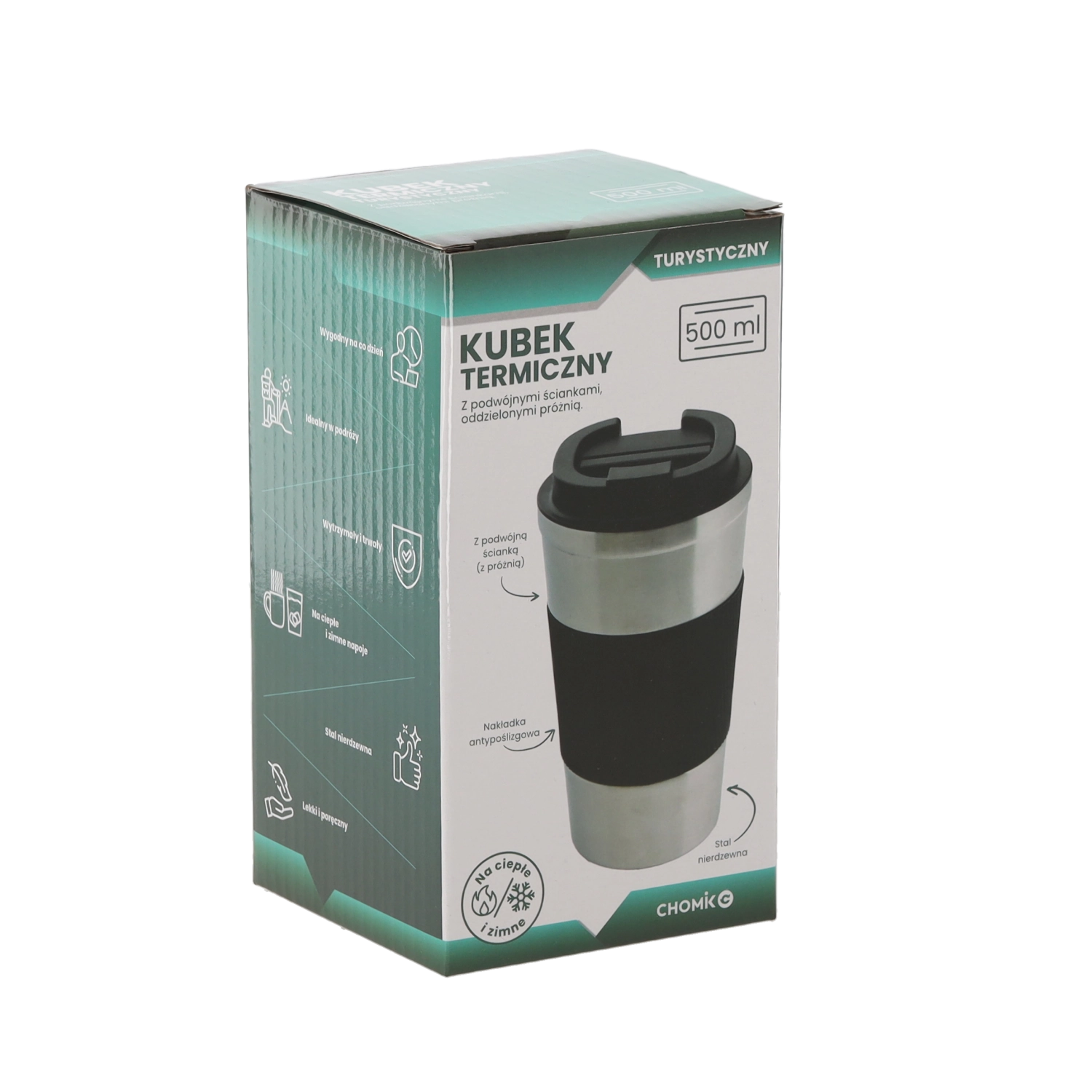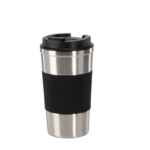 Pratique mug isotherme en acier inoxydable de 500 ml pour garder vos boissons à portée de main en déplacement. Grâce à sa double paroi à isolation sous vide et à sa prise en main antidérapante en silicone, il se tient confortablement et offre une meilleure isolation. Le couvercle à clapet en PP limite les éclaboussures, le mug est compatible lave-vaisselle et maintient la température jusqu’à 4 heures.