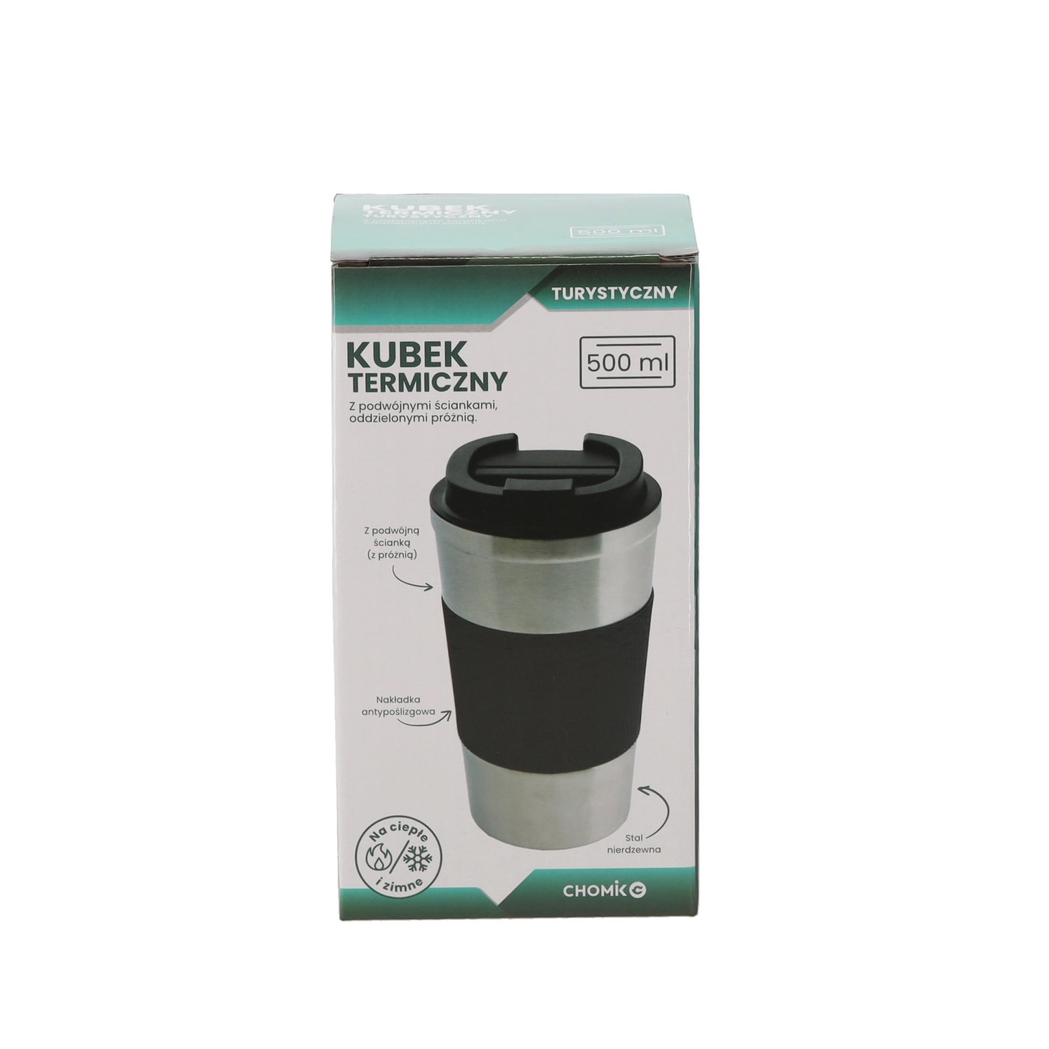 La gaine en silicone texturée au milieu du corps assure une tenue ferme et une isolation thermique supplémentaire, pour un confort optimal même avec une boisson chaude.